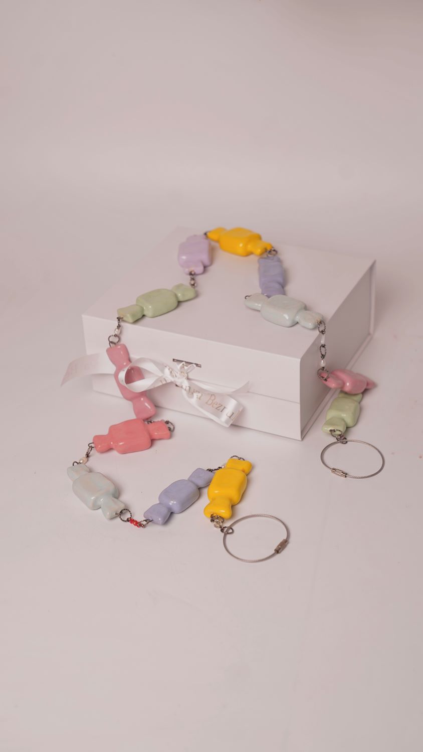 Брелок с керамикой ручной лепки и хлопковым шнуром, сложные формы, коллаборация 2025