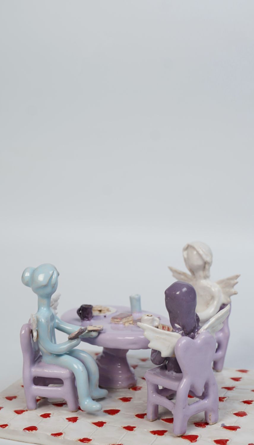 Керамическая скульптура миниатюрной галереи с фигурами и картинами, Даша Безруких