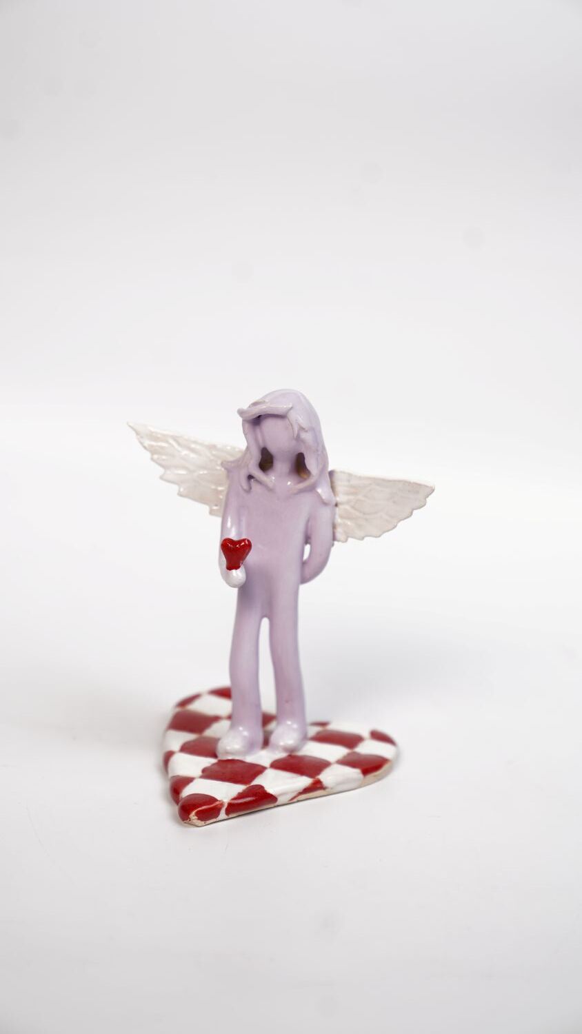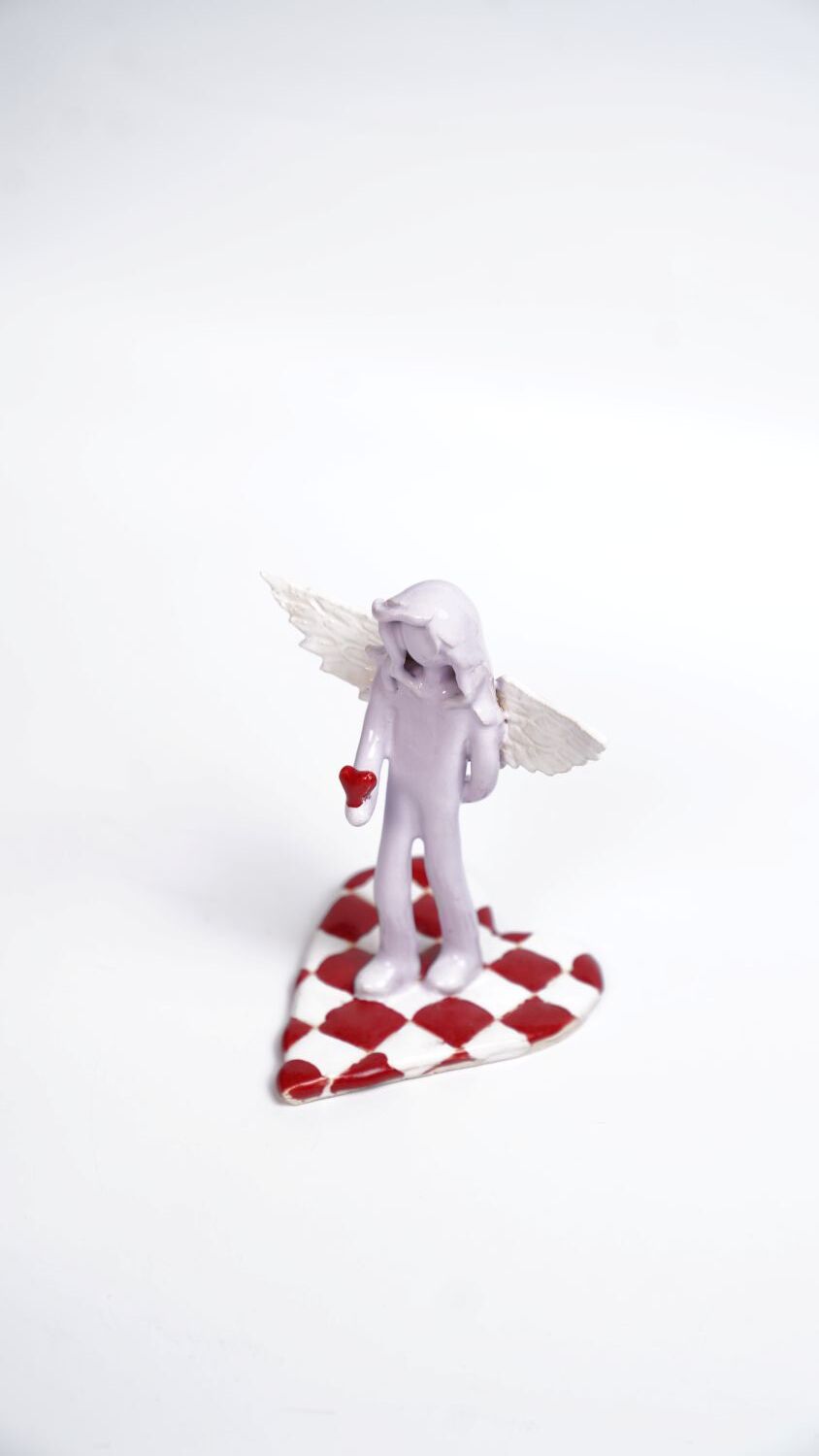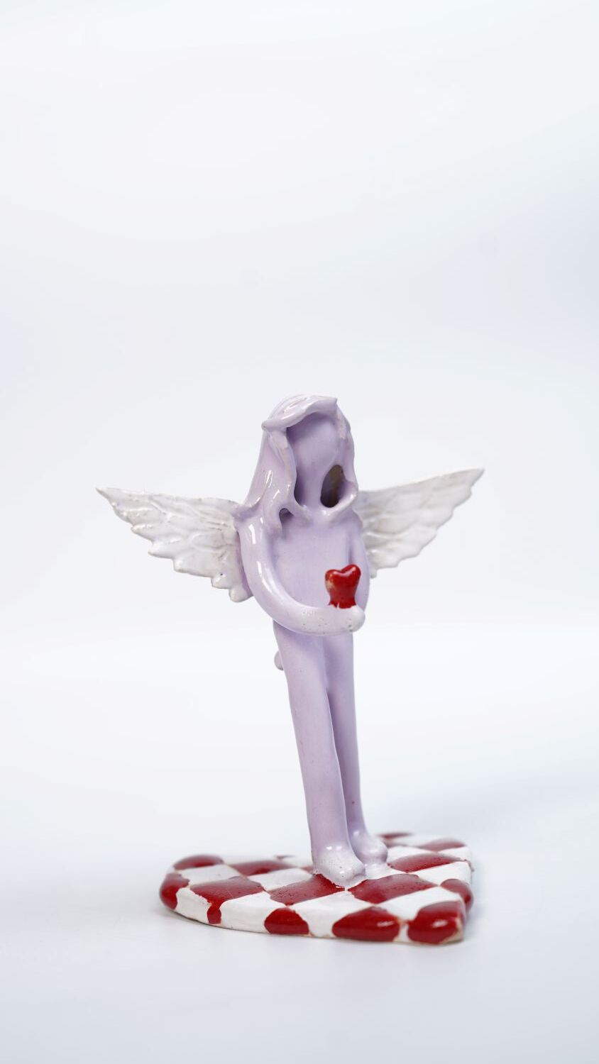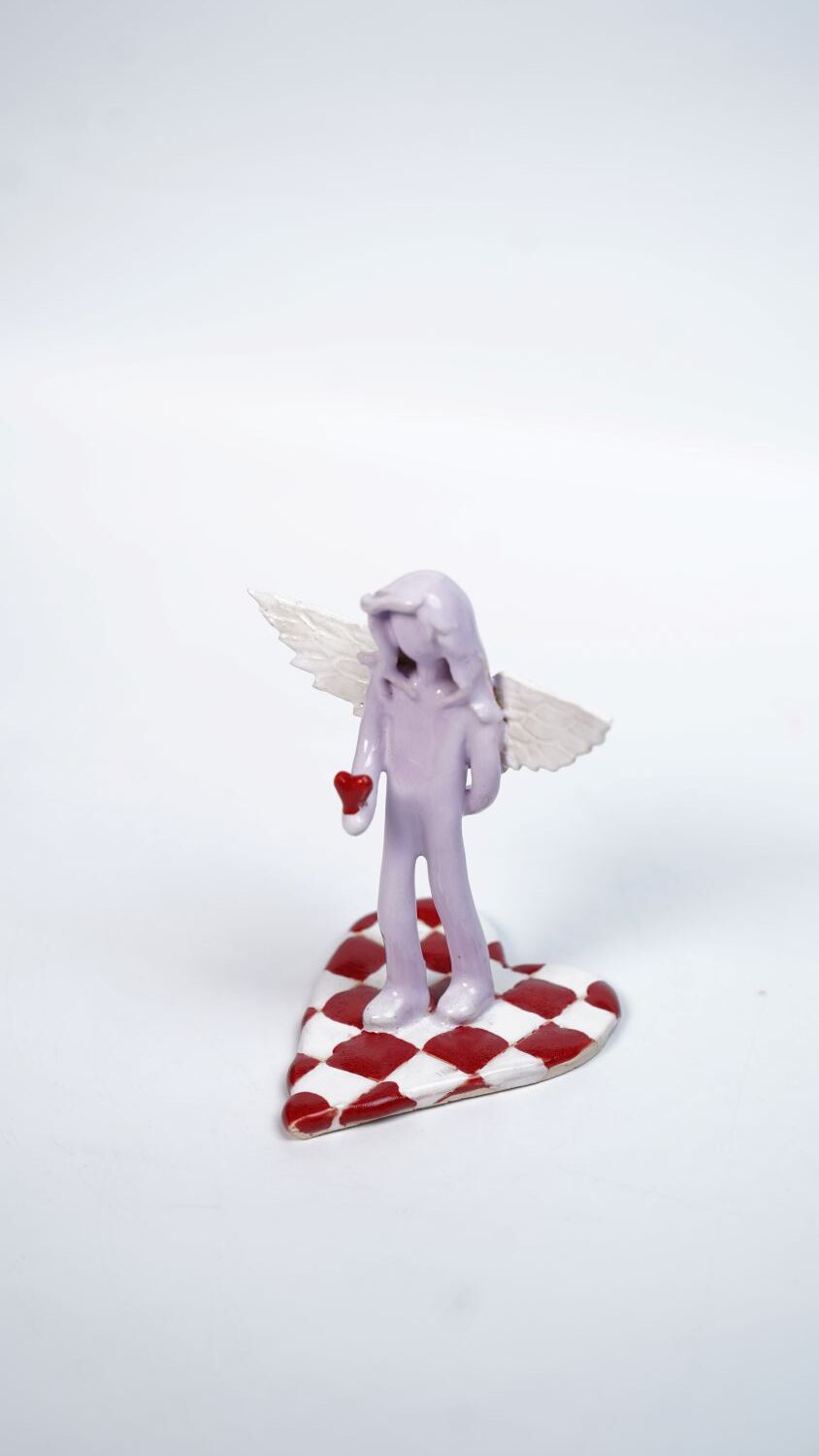 Керамическая мини-скульптура ангела, глина, масло и лак, Алиса Гвоздева, 2025, ручная работа, настенное панно