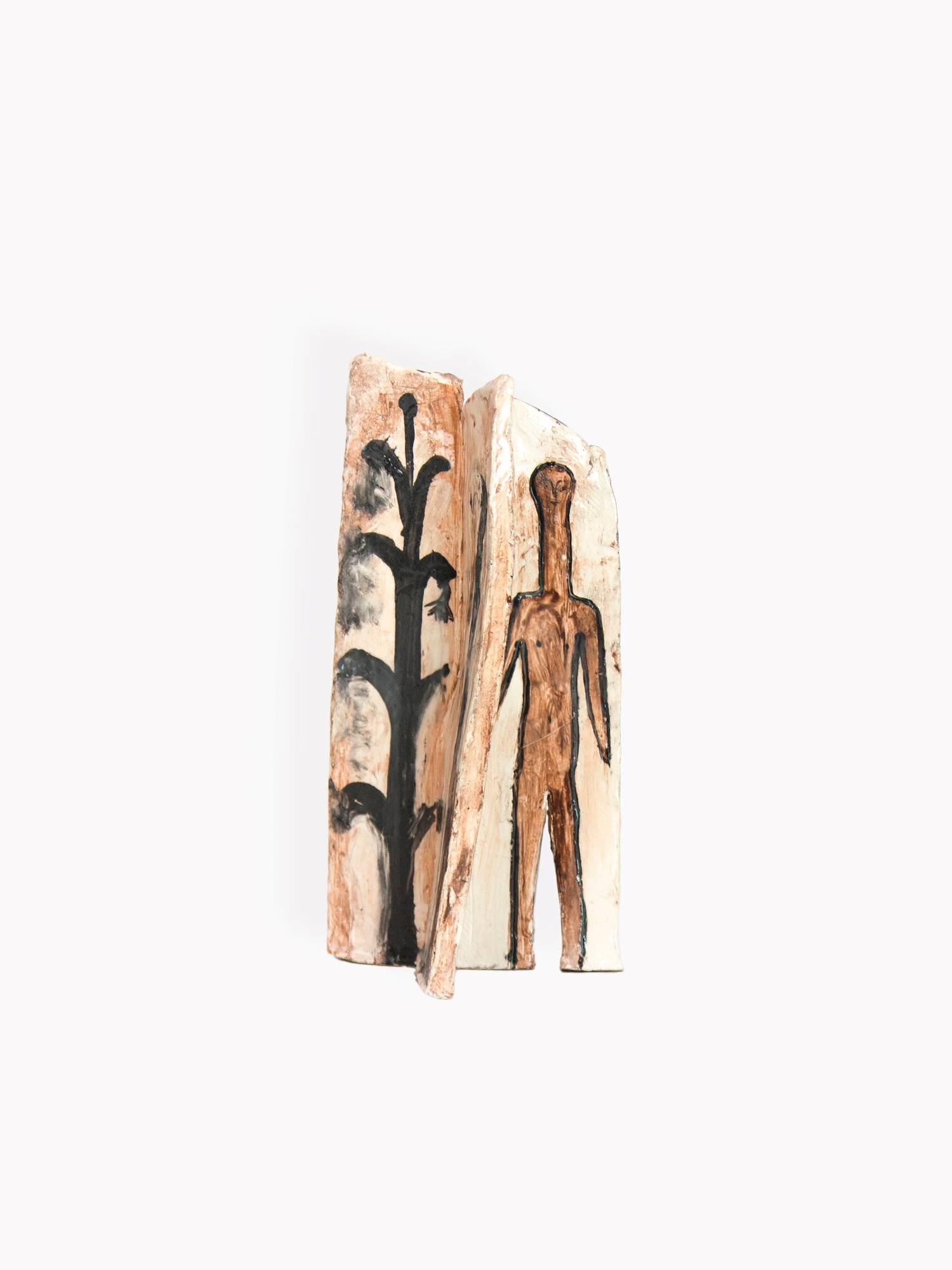 Скульптура «Встреча в лесу» Полины Долгой, глина с ангобами и глазурью, вертикальная авторская керамика