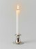 Тонкая свеча в металлическом подсвечнике серебристого цвета с гладкой отражающей поверхностью