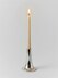 Тонкая свеча в металлическом подсвечнике серебристого цвета с гладкой отражающей поверхностью