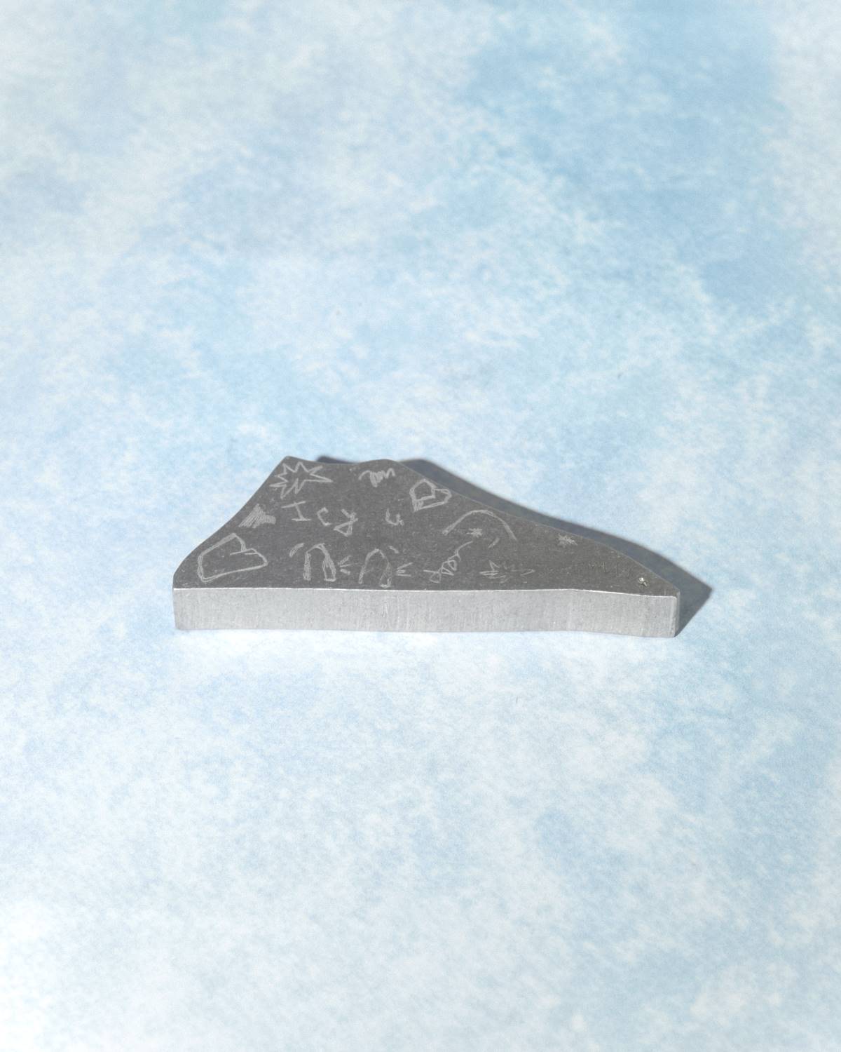 Образ отколовшегося кусочка льда, на котором нацарапаны наивные картинки и слова, воплотился в миниатюрной подставке для одной ароматической палочки. На её поверхности выгравированы рисунки и аббревиатура I C Y (I see you) от художницы Кати Любавской.