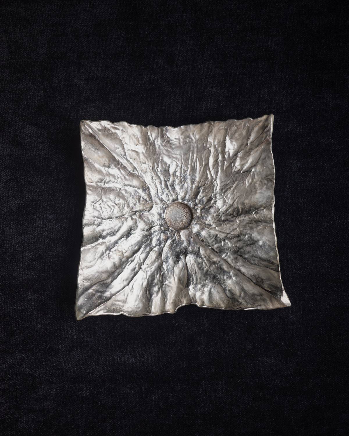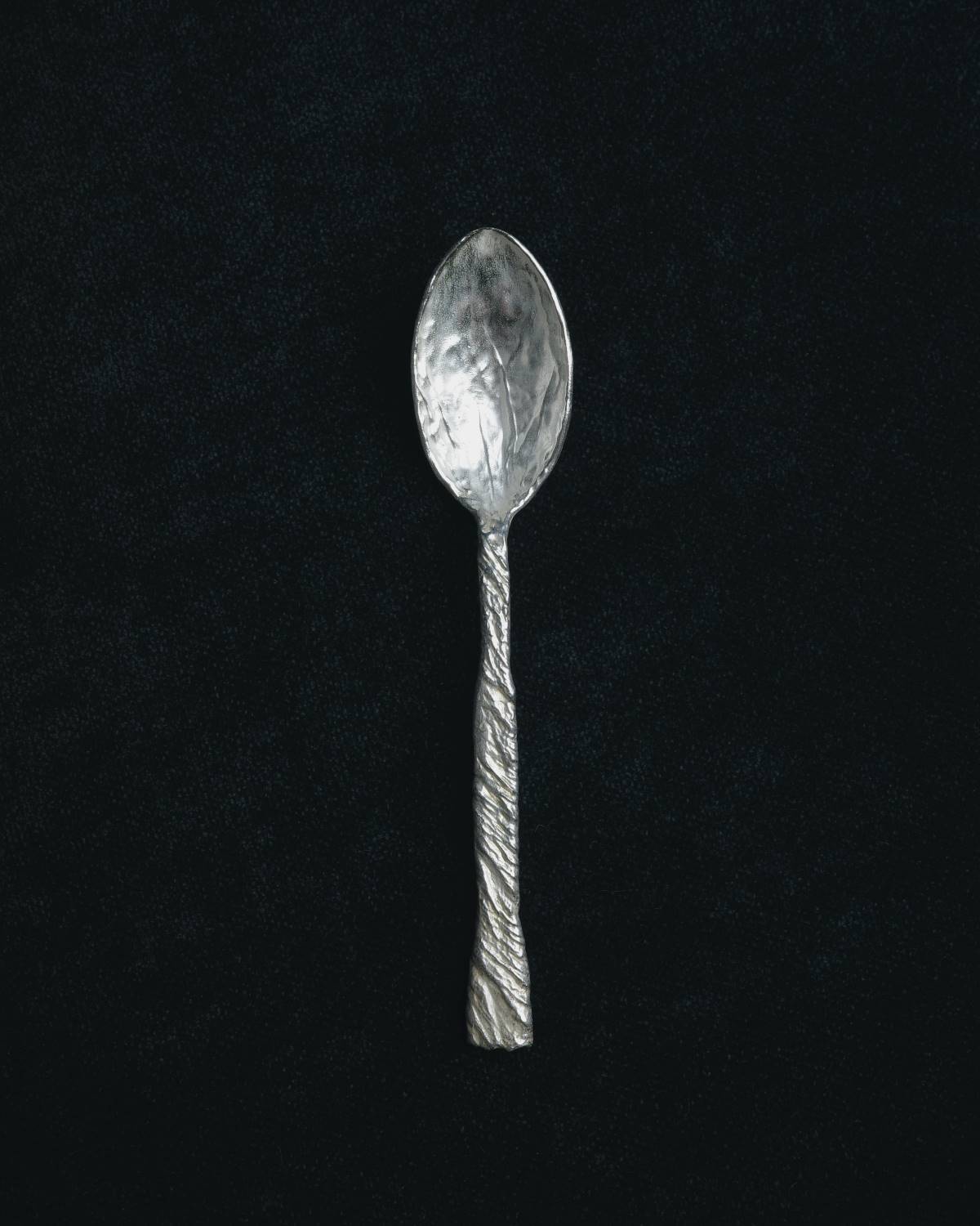Фактурная посеребренная ложка TISSUE SPOON на темной ткани