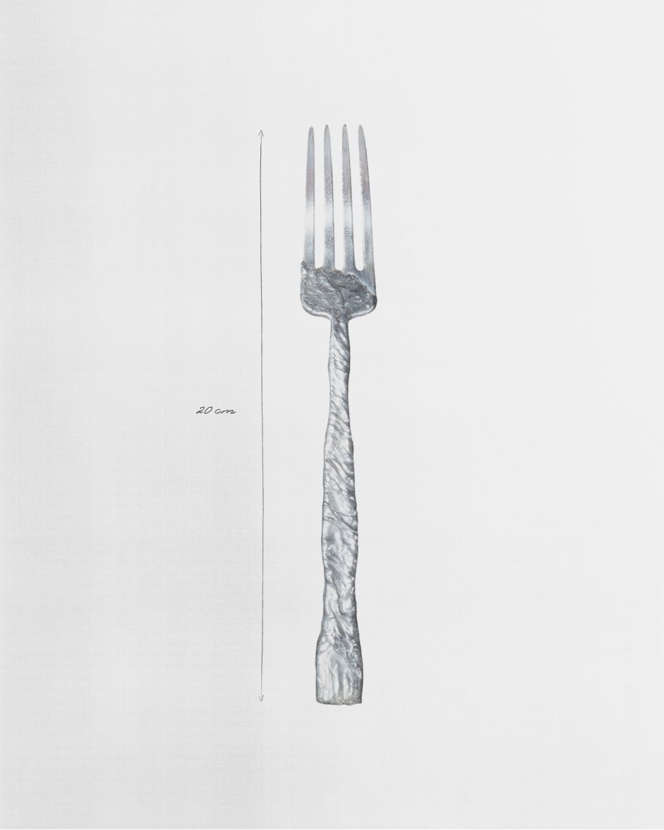 Авторская серебристая вилка TISSUE FORK на черном фоне