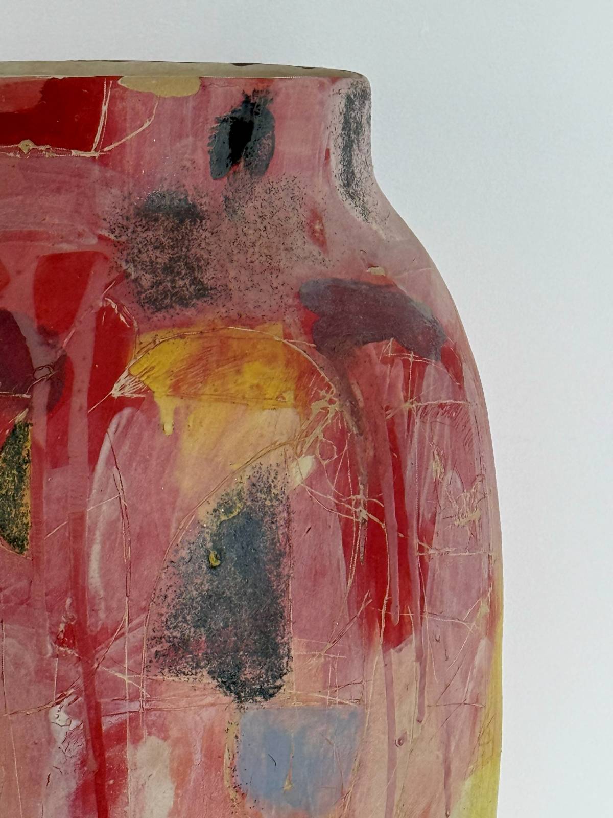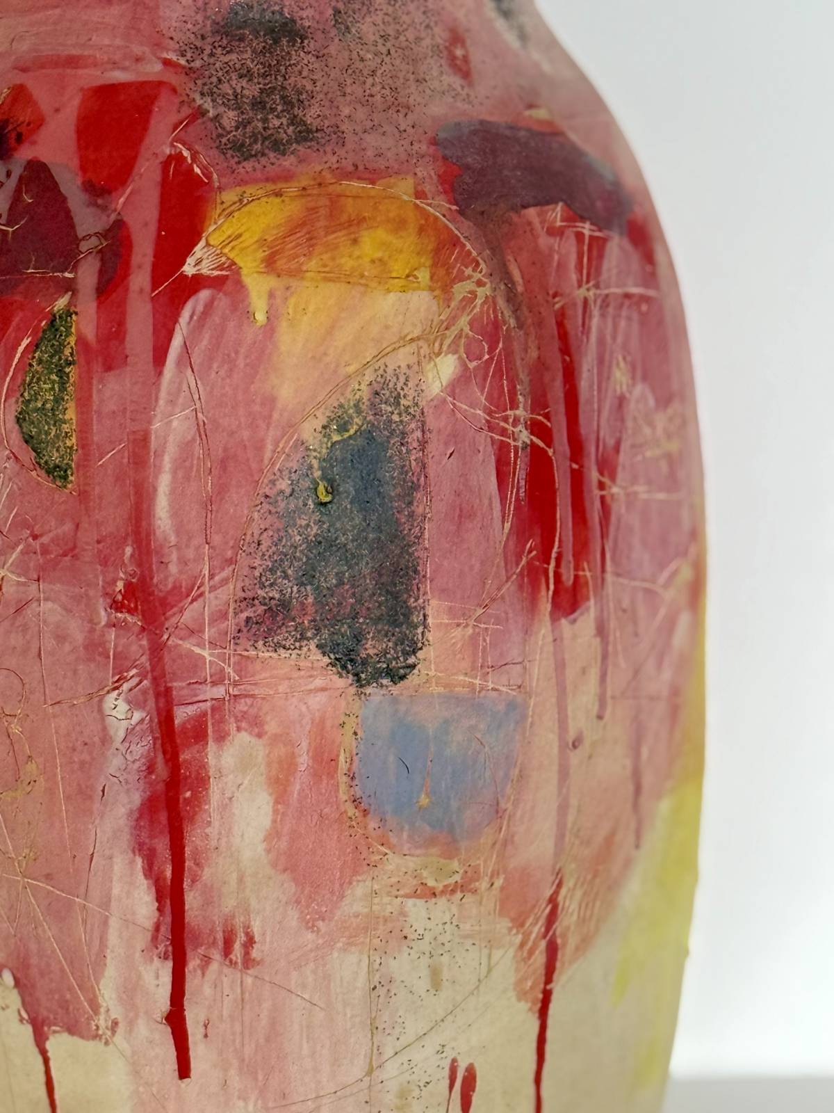 Веселая ваза Марии Софроновой — керамика, ангобы, пигменты, глазурь и воск; авторская работа, 45×33 см