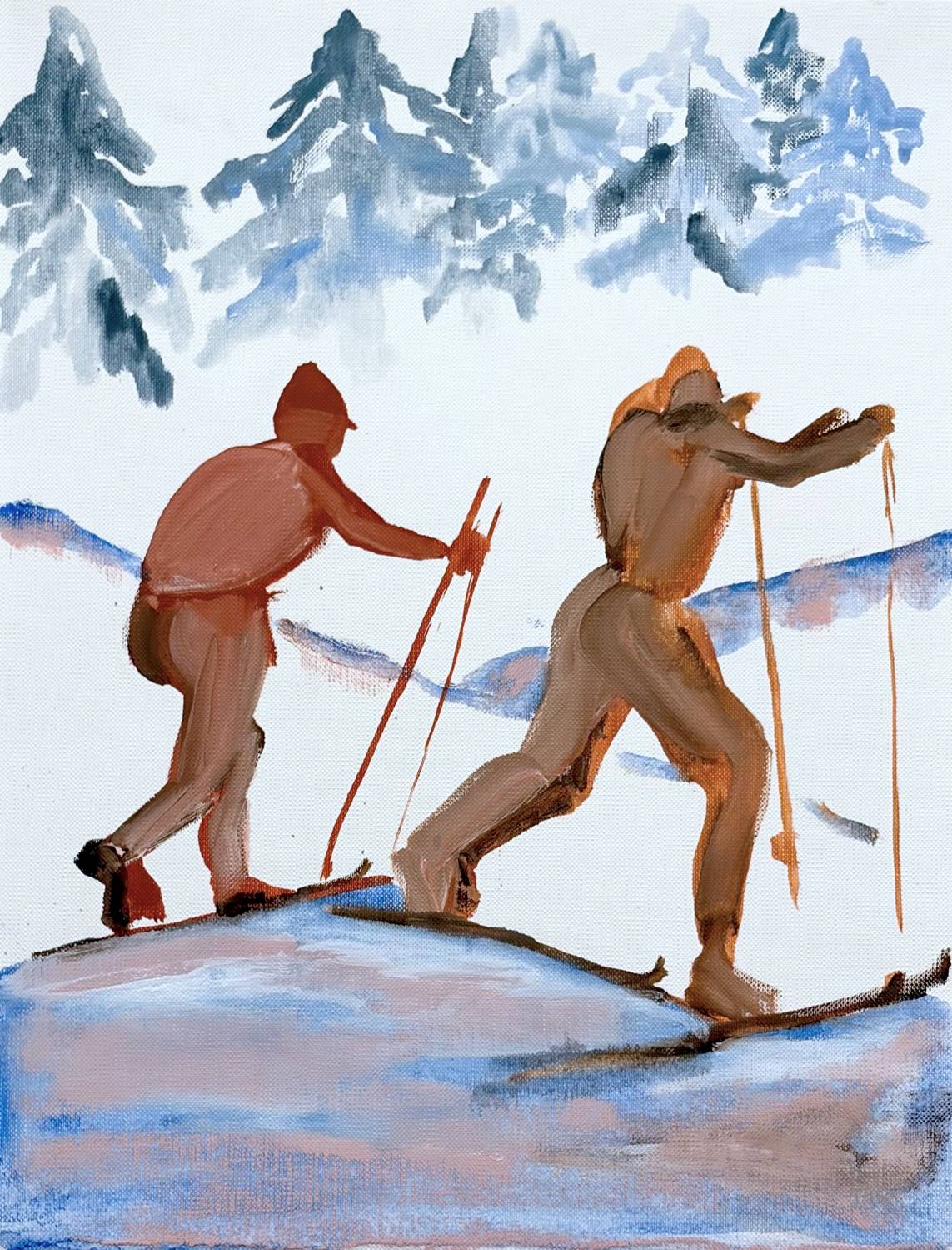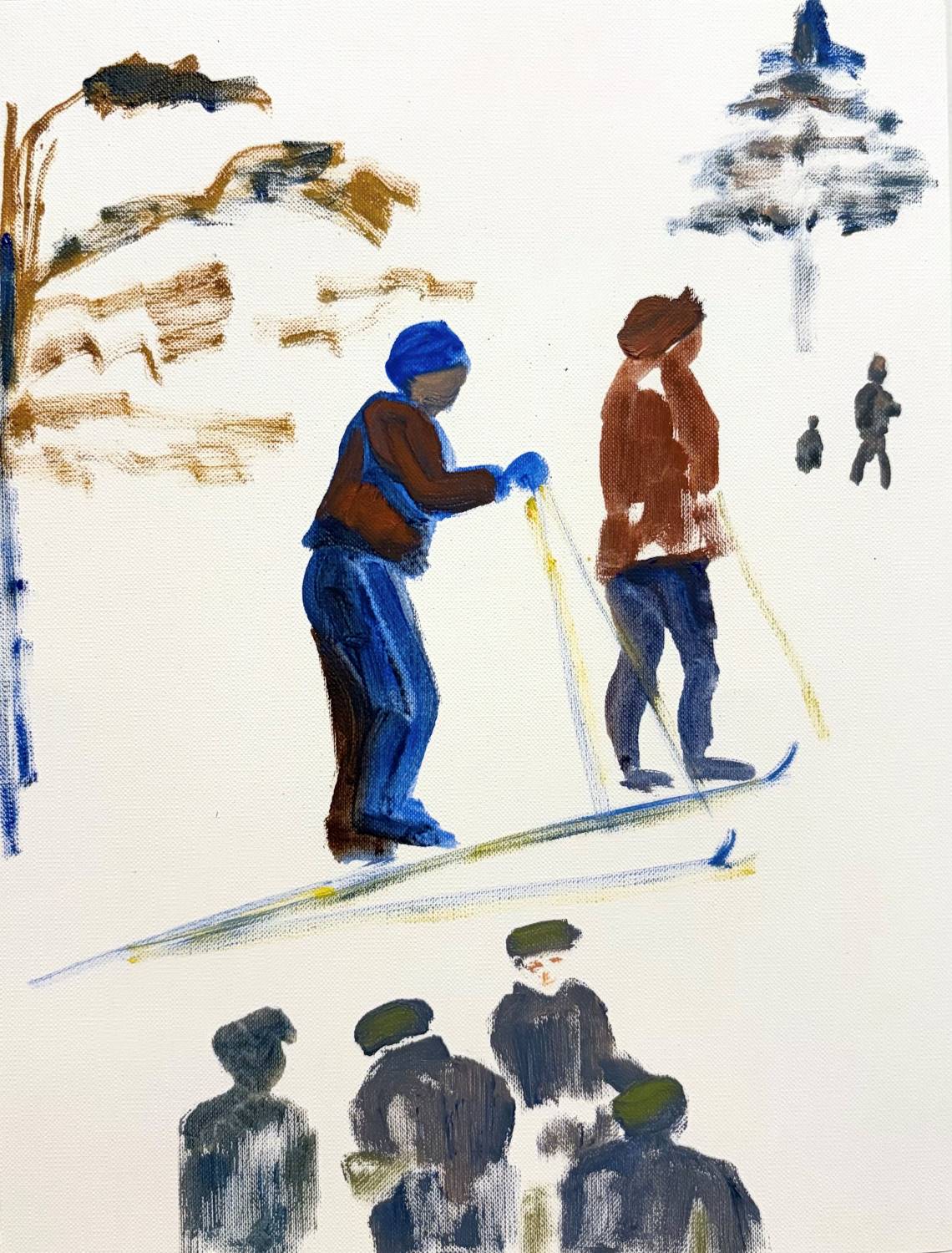 Черно-белая графика: пара в зимнем парке, авторская техника сухой иглы, Александра Бурмистрова, 2025
