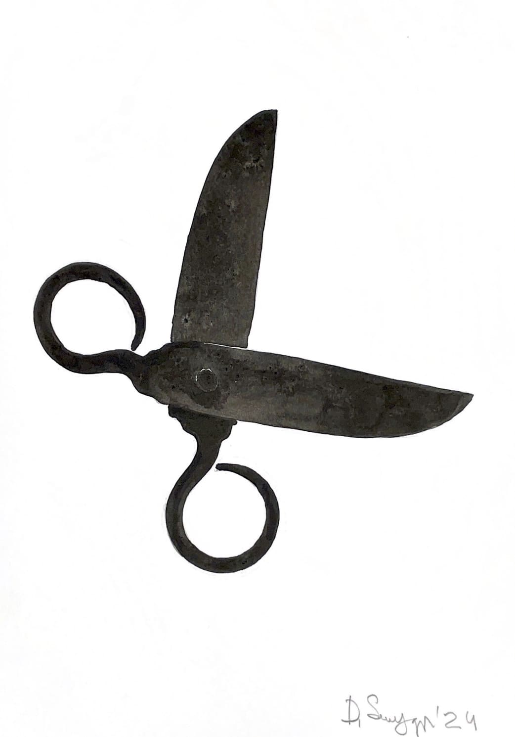 Абстрактная акварель Дмитрия Самыгина — темно-синие размытые формы на белом фоне, современная графика