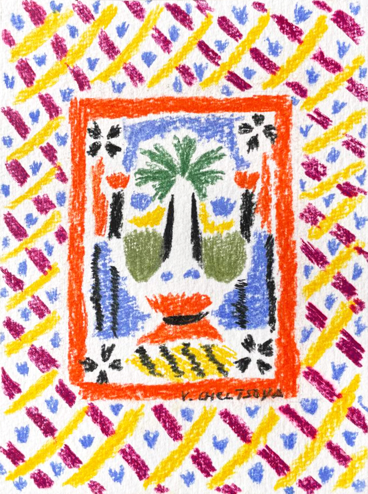 Старцы (24 маски) Маша Обухова – акварель и карандаш на хлопковой бумаге, абстрактные лица