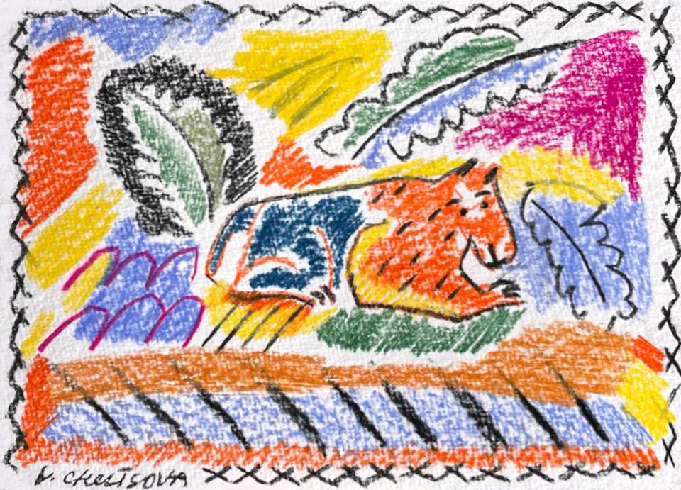 Цветная тушь, абстрактная фигура с лошадью. Современное искусство, графика, ручная работа, Россия 2023