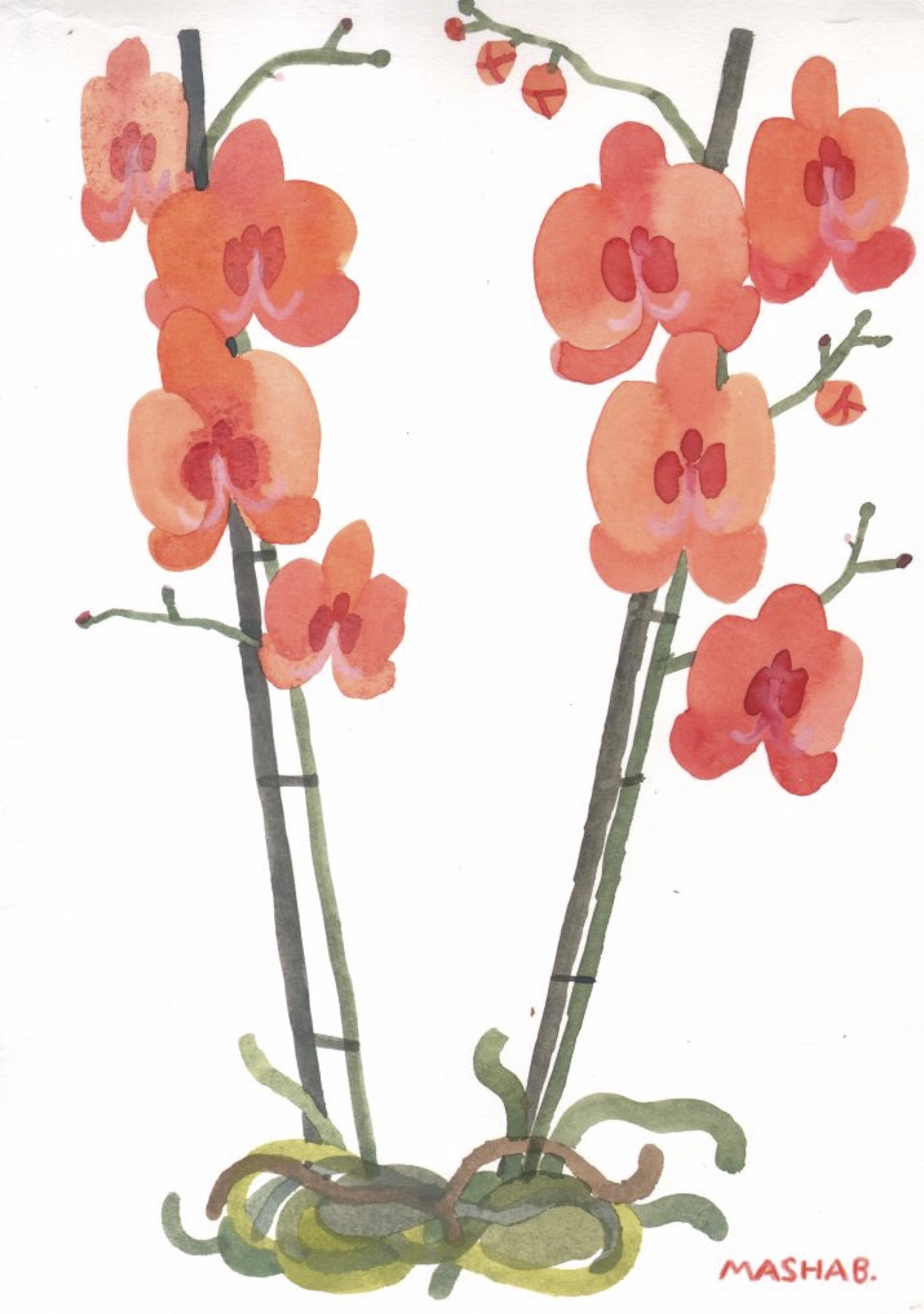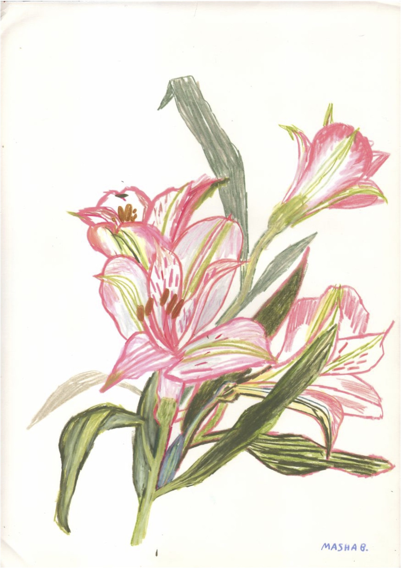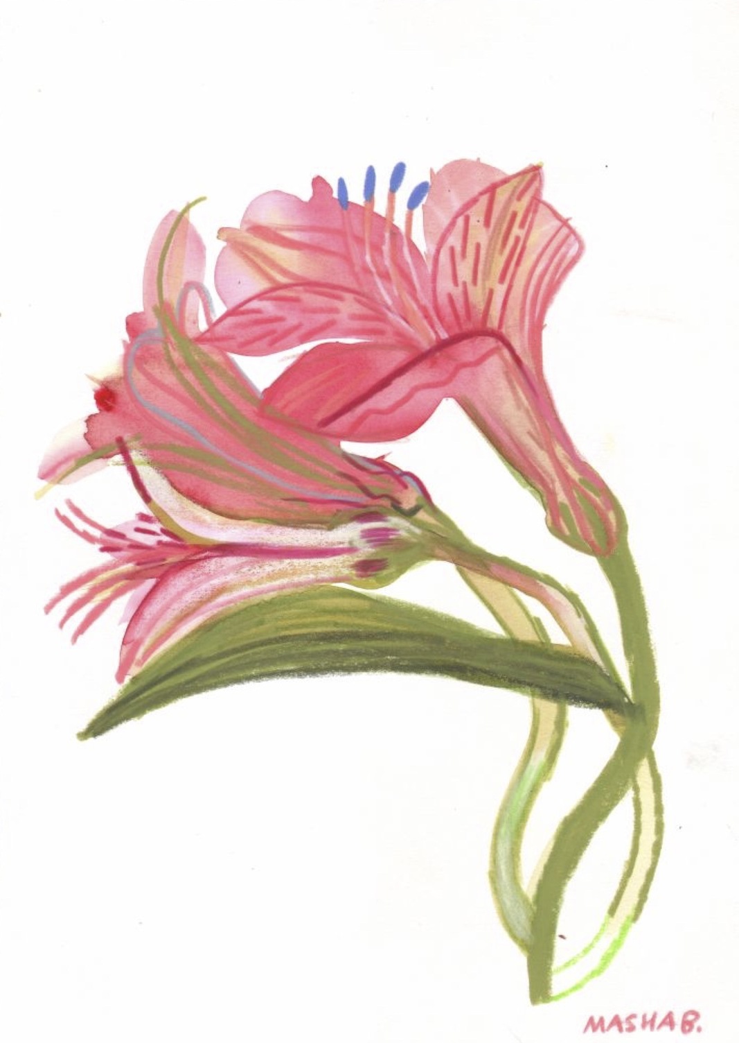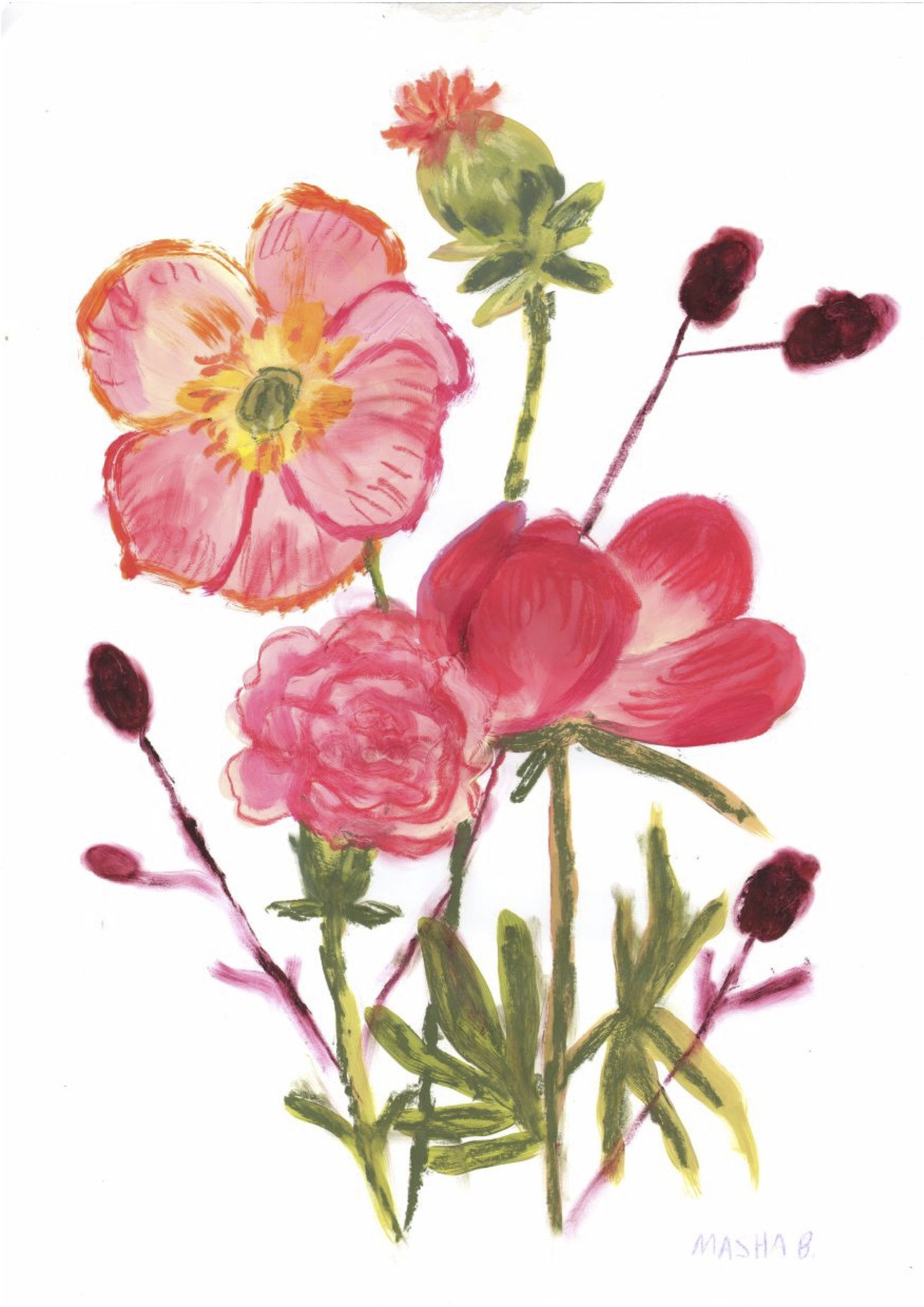 Цветочная акварель в розовых и жёлтых тонах — авторская графика Катя Бровкина, 2023
