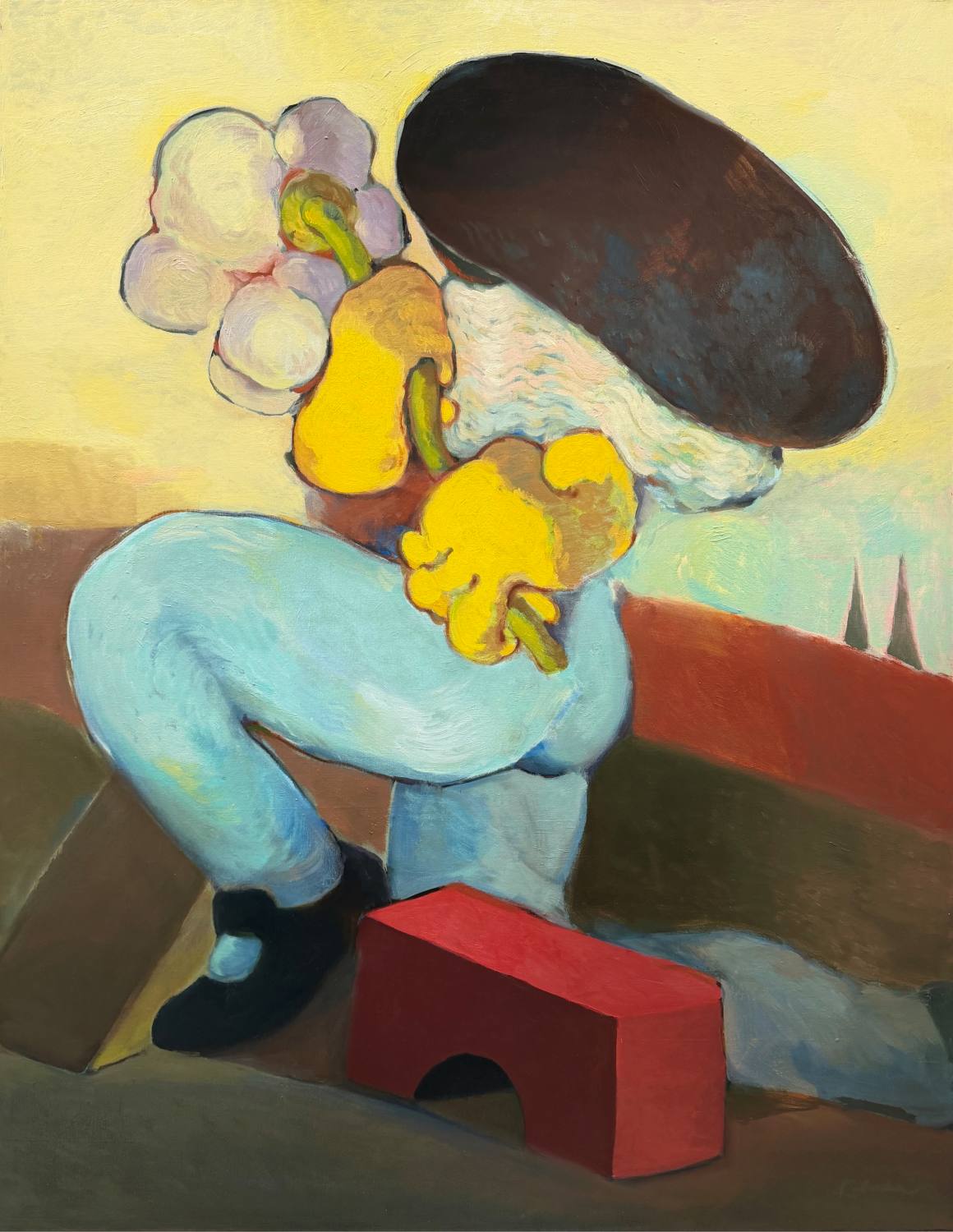 Графика «Оригиналы таро» Вика Когай — юноша с мечом и лютней, зелёный пол, красная стена, арт по мотивам таро, 2023