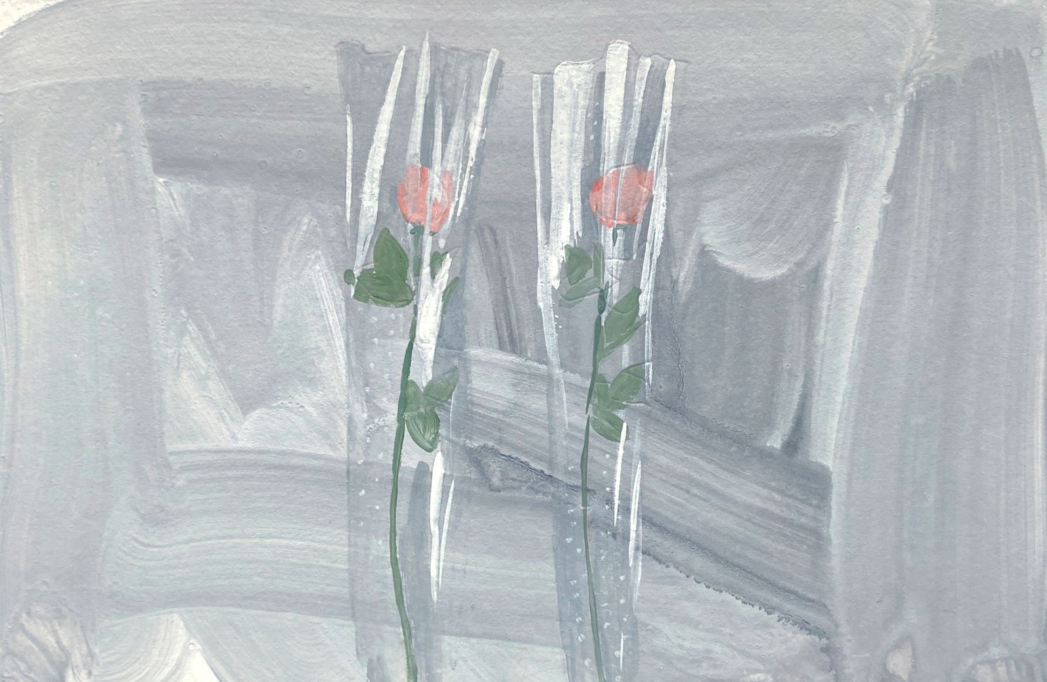 Картина Дарьи Барыбиной «Ваза» из серии «Хрупкость», выполненная гуашью на бумаге, изображение стеклянной вазы на фоне окна, 2021 год