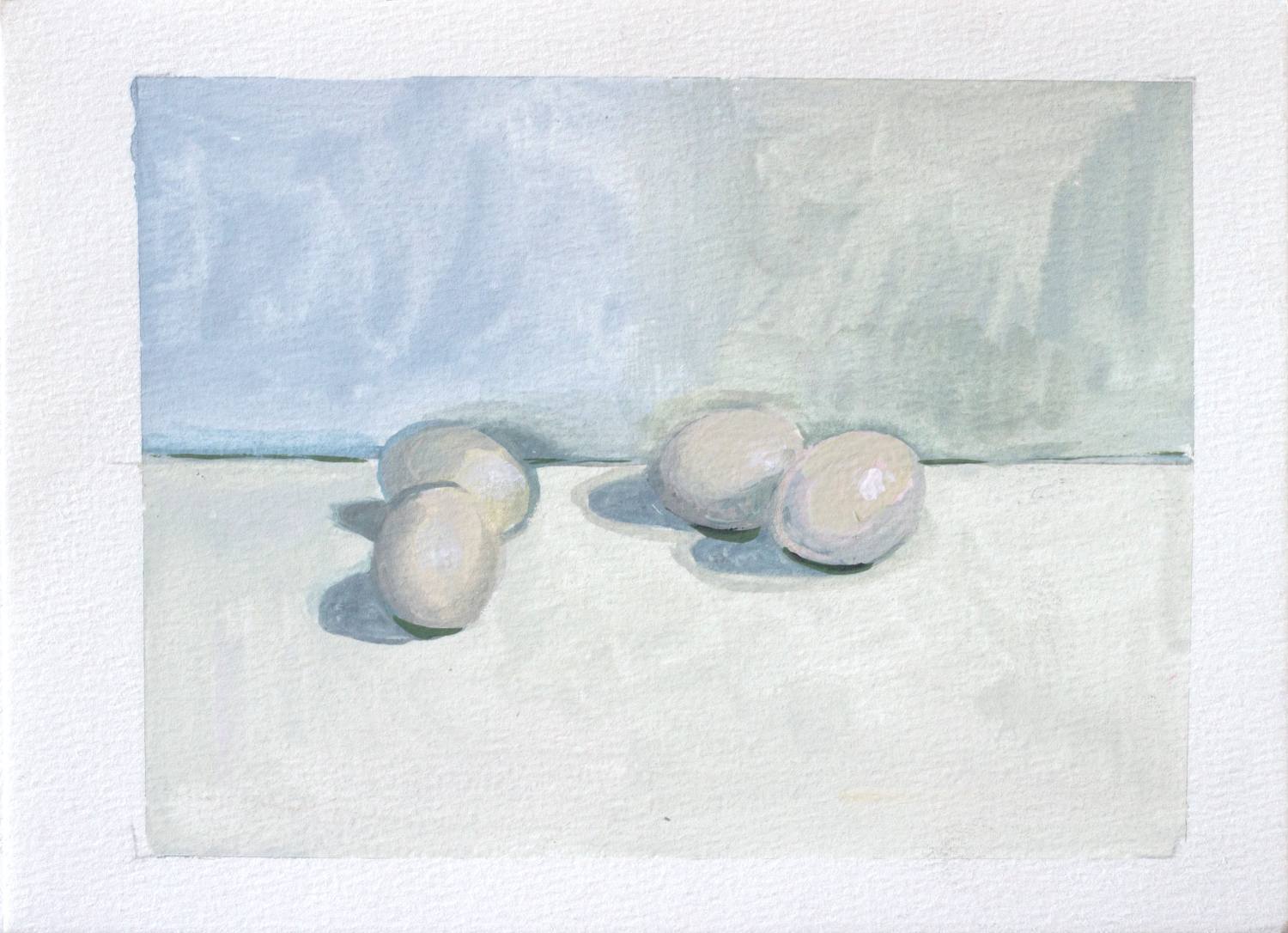 Акварель «Landscape» Арины Шабановой – абстрактный пейзаж с зелёными холмами и озером, современная графика.