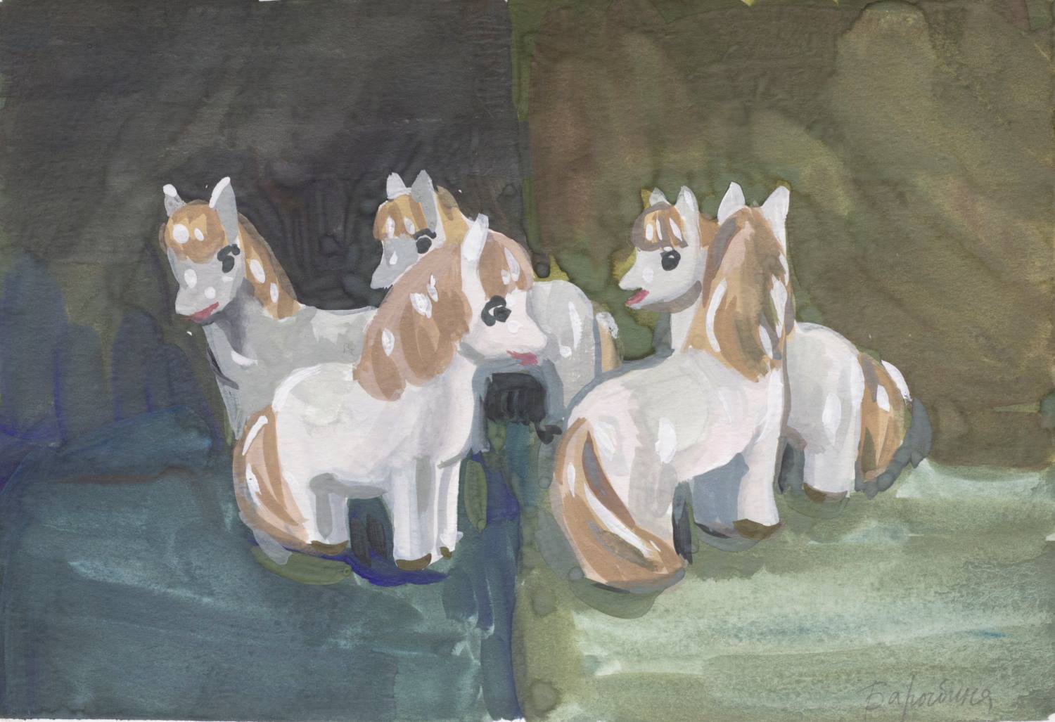 Гуашевая графика с манекеном в зеркальной комнате, Дарья Барыбина «Манекен»