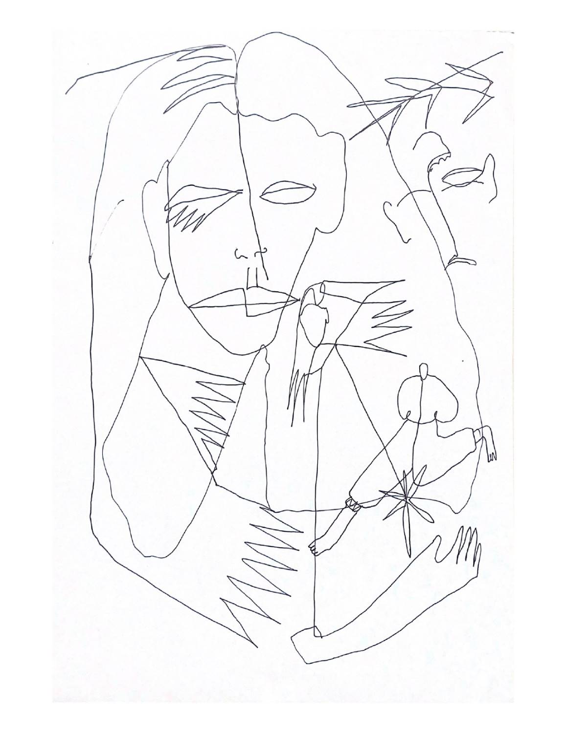 Графика «8–16» Наташи Гончаровой с абстрактными лицами и телами, акварель и карандаш