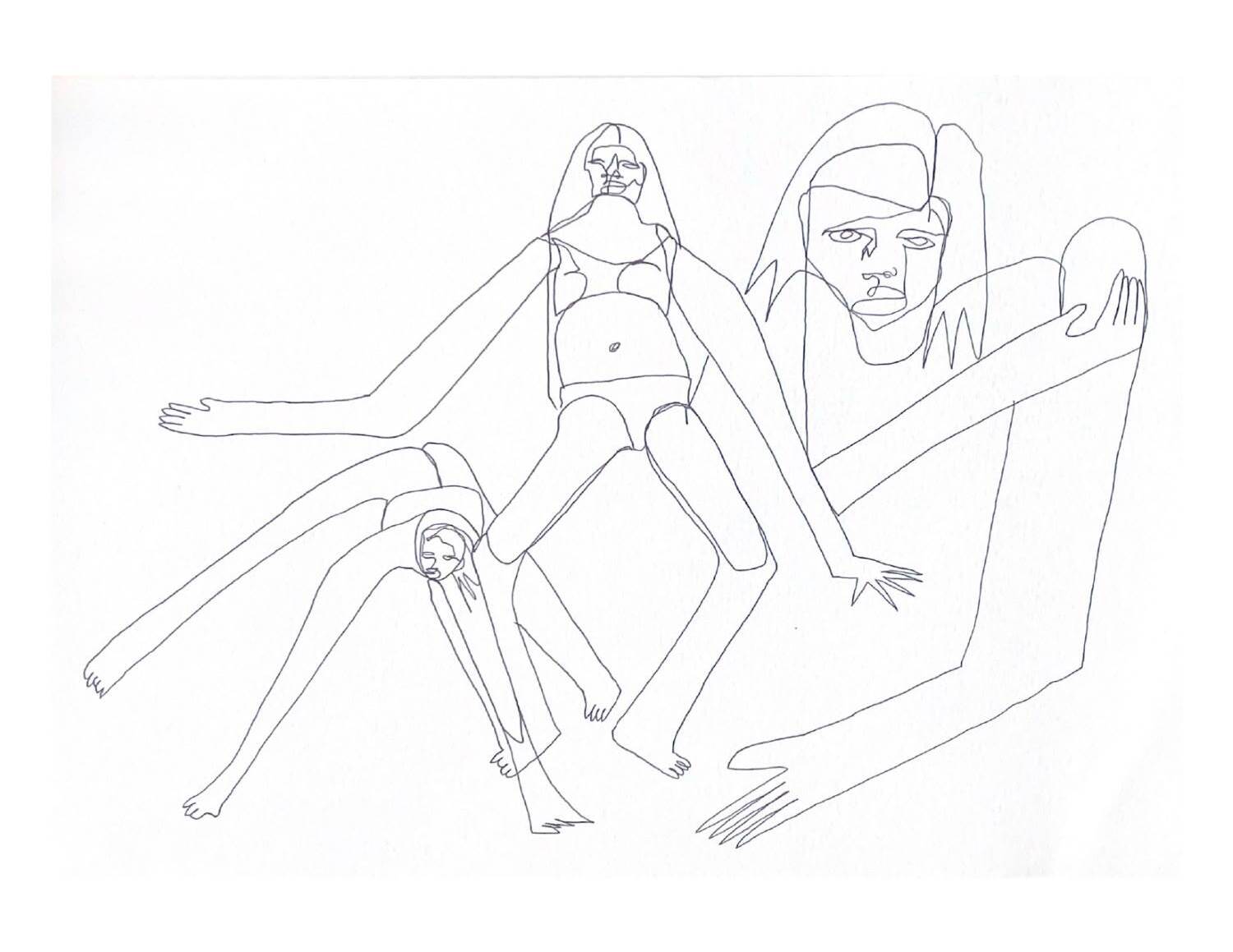 Графика «8–16» Наташи Гончаровой с абстрактными лицами и телами, акварель и карандаш