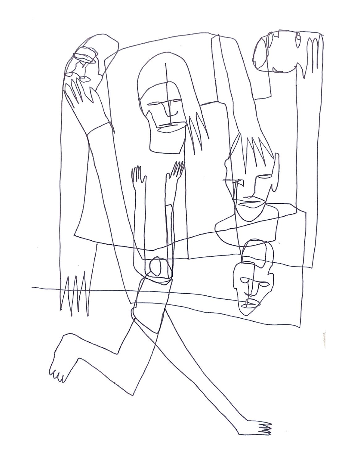 Графика «8–16» Наташи Гончаровой с абстрактными лицами и телами, акварель и карандаш