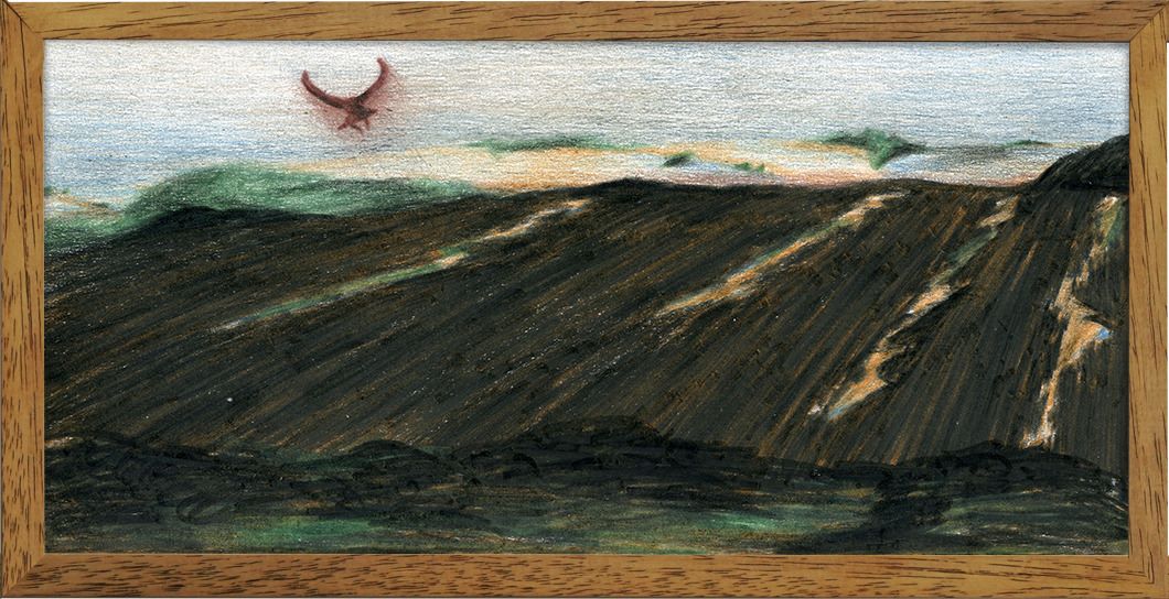 Акварель «Landscape» Арины Шабановой – абстрактный пейзаж с зелёными холмами и озером, современная графика.
