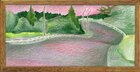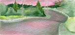 Акварель «Landscape» Арины Шабановой – абстрактный пейзаж с зелёными холмами и озером, современная графика.