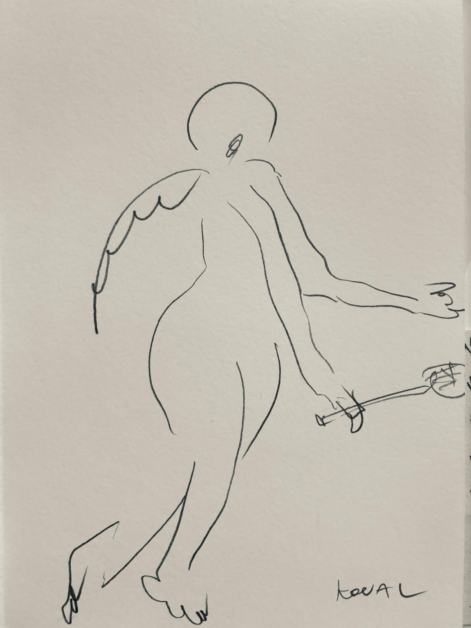 Минималистичный портрет ангела в стиле наивного искусства, графика карандашом, Полина Коваль, 2023