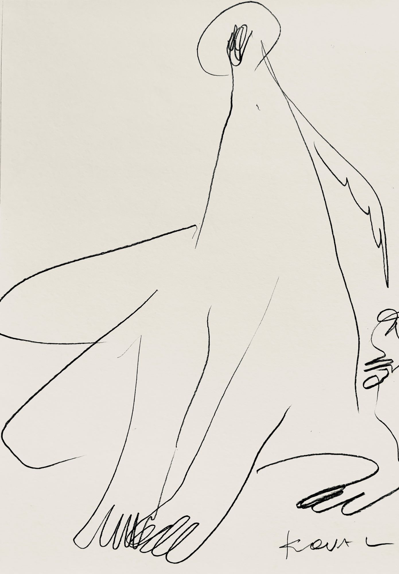 Минималистичный портрет ангела в стиле наивного искусства, графика карандашом, Полина Коваль, 2023