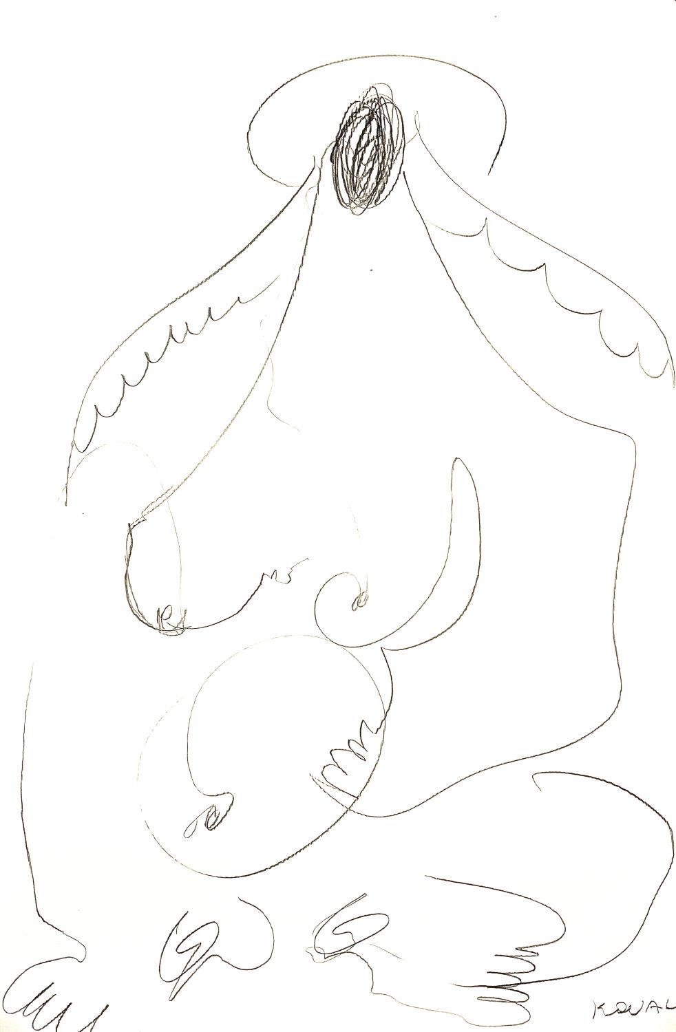 Минималистичная графика беременной фигуры, символизирующей жизнь, бумага, карандаш, Полина Коваль, 2023