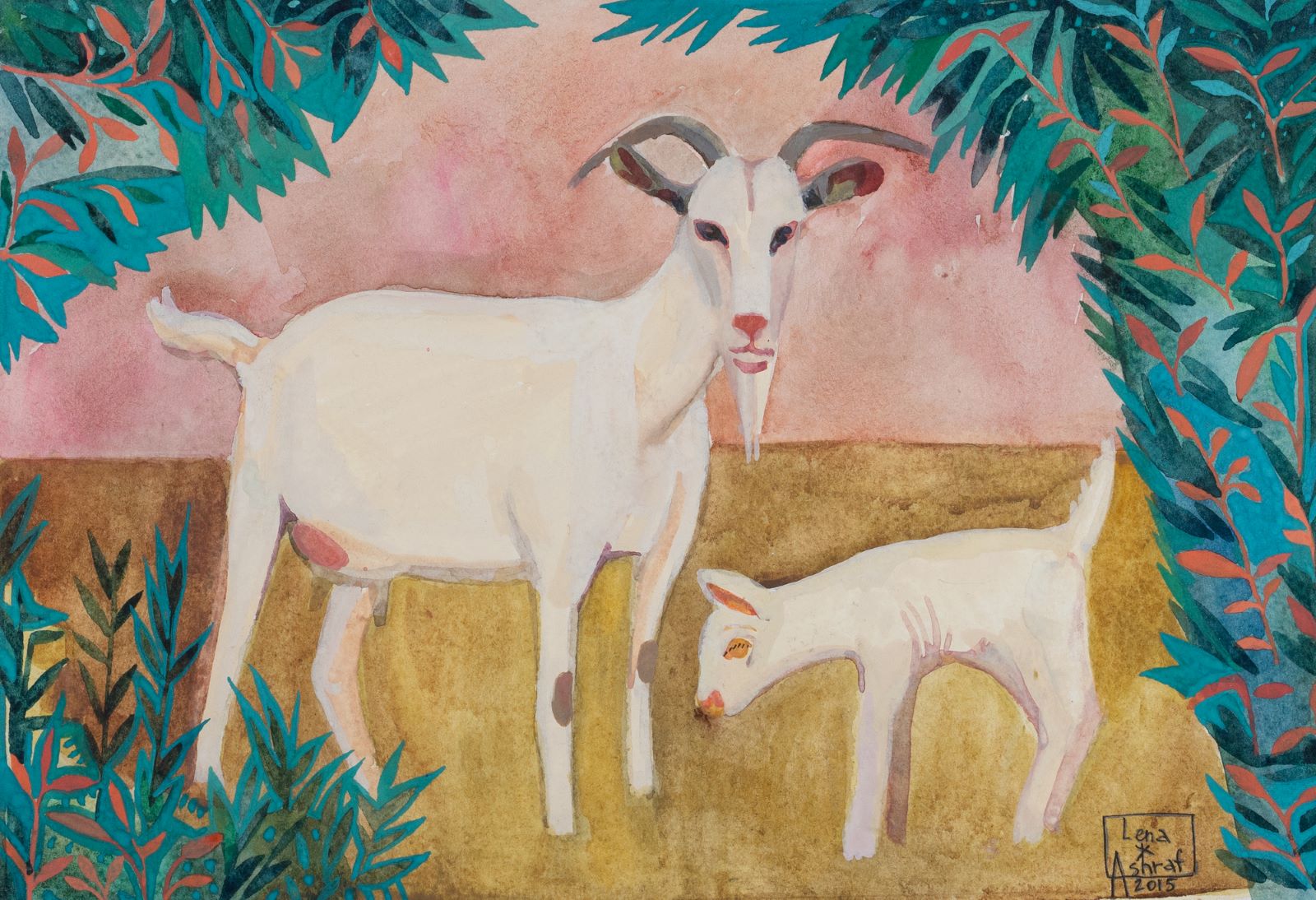 Картина “Пеликан под деревом” Лены Ашраф, 2024 год, бумага, акварель, перо, размер 26×51 см, цена 25 000 рублей, без рамки