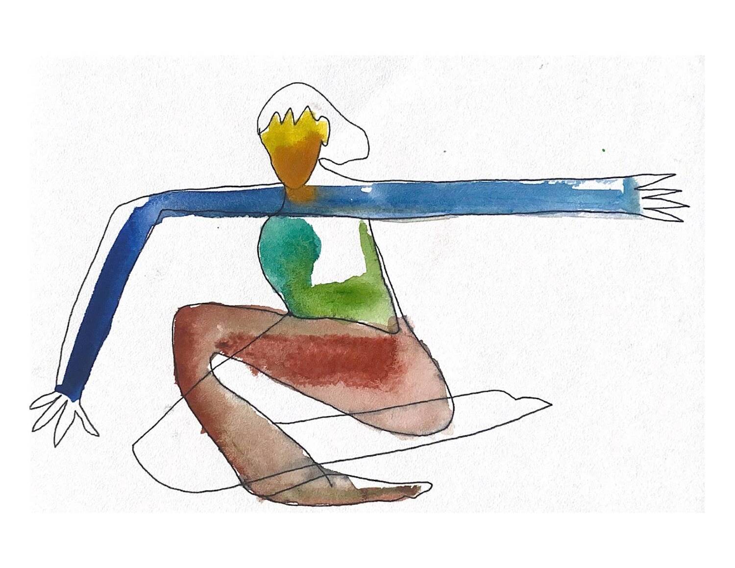 Графика «8–16» Наташи Гончаровой с абстрактными лицами и телами, акварель и карандаш