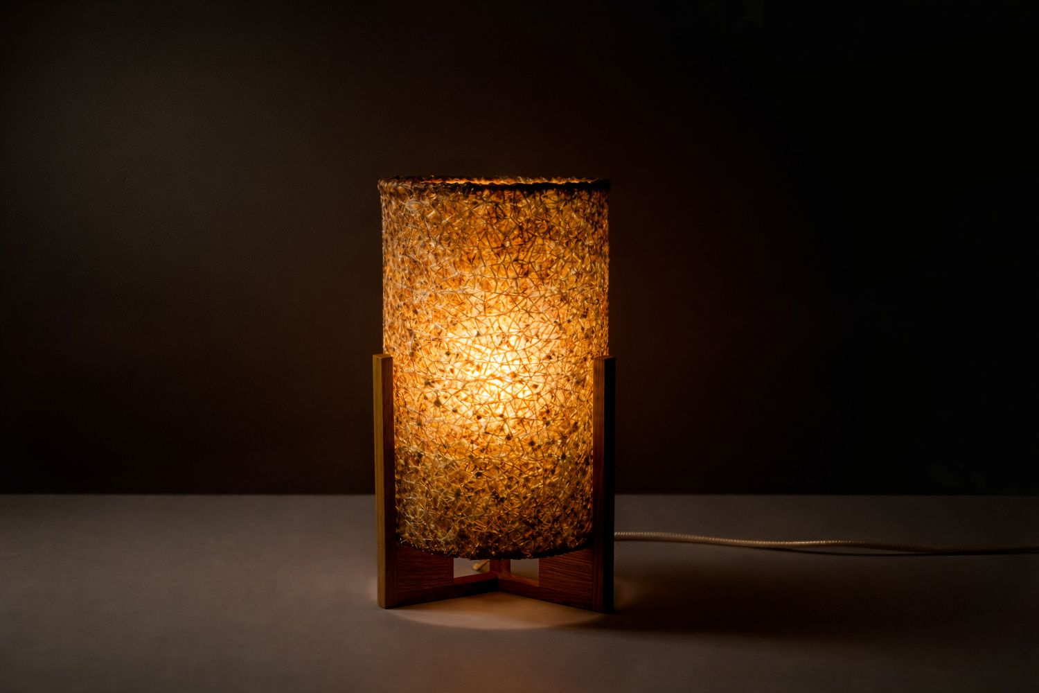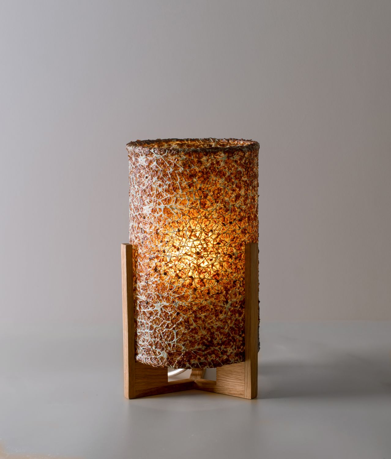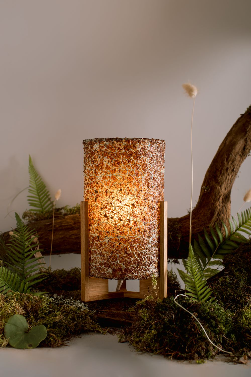 Биокомпозитный материал на основе шелухи кедрового ореха, массив дуба, сталь. Открытый тираж.