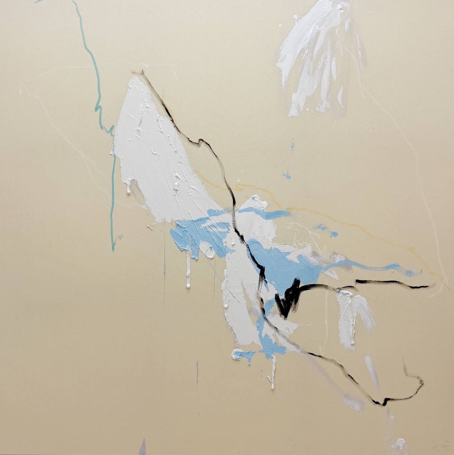 Акриловая абстрактная живопись «untitled w 001» с чёрными линиями на светлом фоне, TONY.WWWWW, 2022