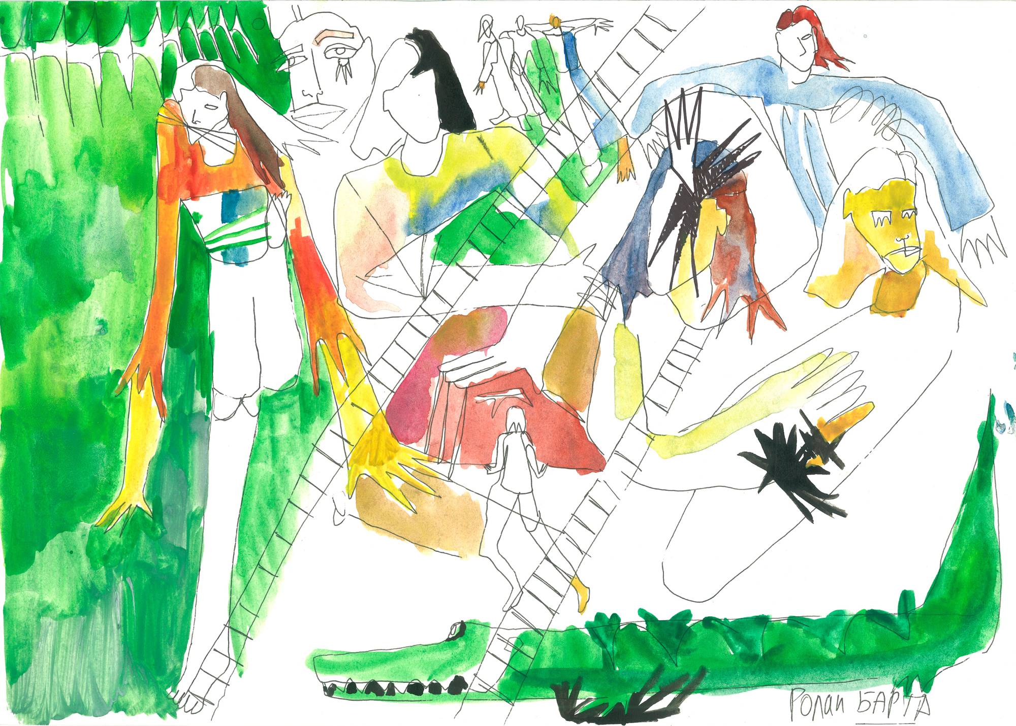 Минималистичная графика с фигурами людей, цветные линии и фломастеры, серия Берлин, 2023