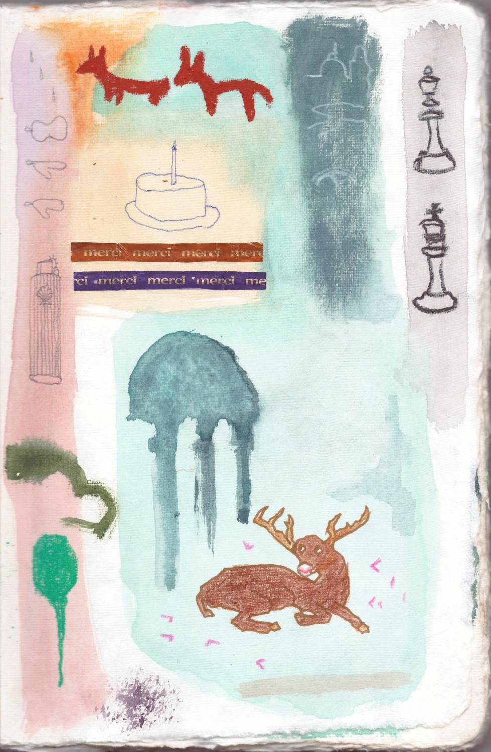Бумага хлопковая, акварель, масляная пастель, реди-мейд, ручка, уголь, смешанная техника. Уникальное произведение. Россия, 2025.