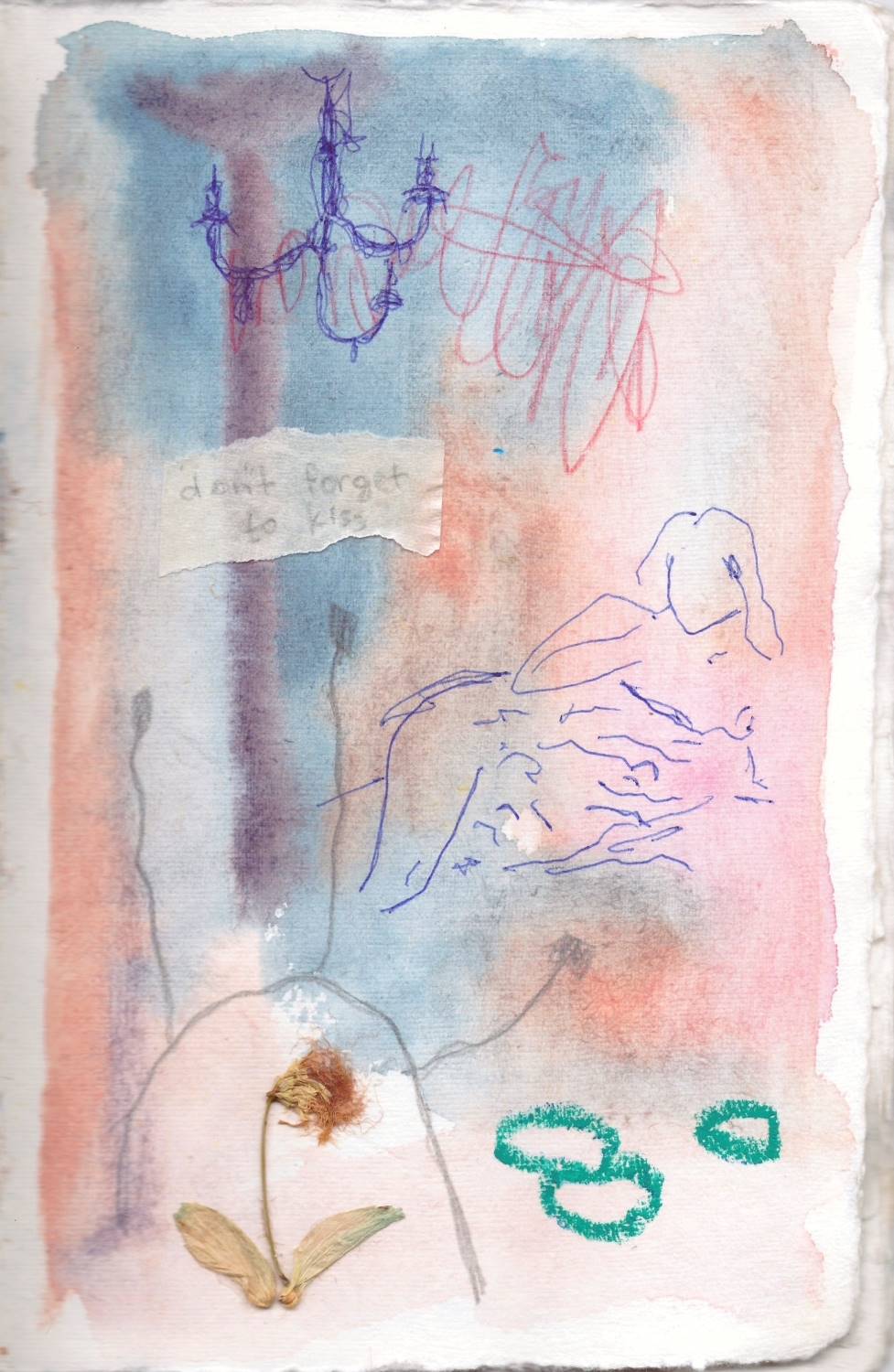 Бумага хлопковая, акварель, масляная пастель, карандаш, ручка, реди-мейд, смешанная техника. Уникальное произведение. Россия, 2025.