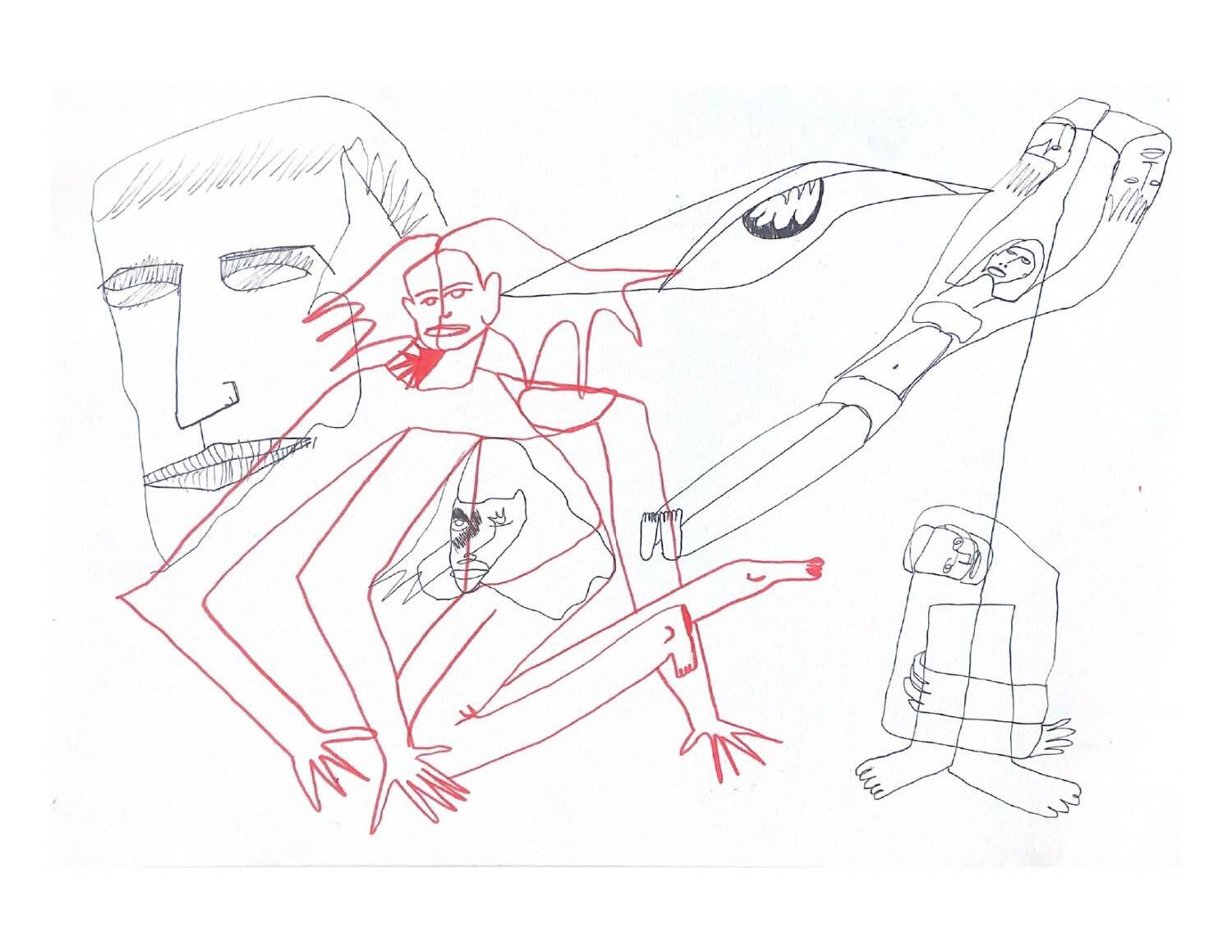 Графика «8–16» Наташи Гончаровой с абстрактными лицами и телами, акварель и карандаш