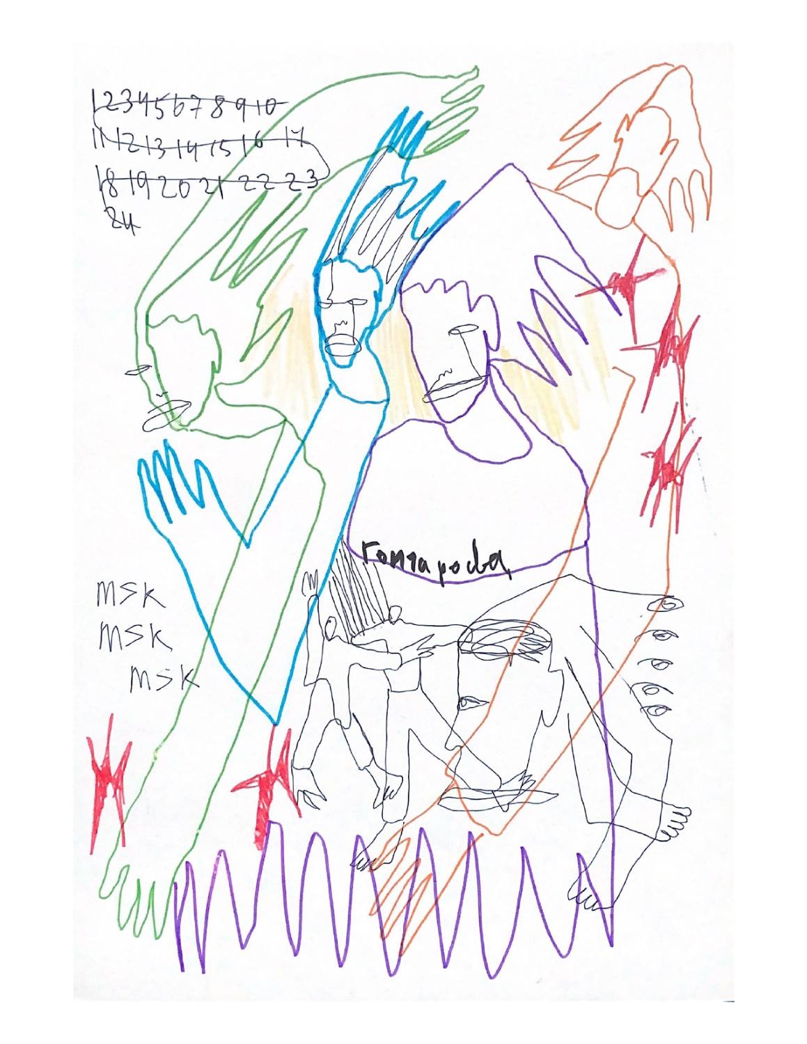 Бумага, гелевая ручка, маркеры. Уникальное произведение. Россия, 2025.
