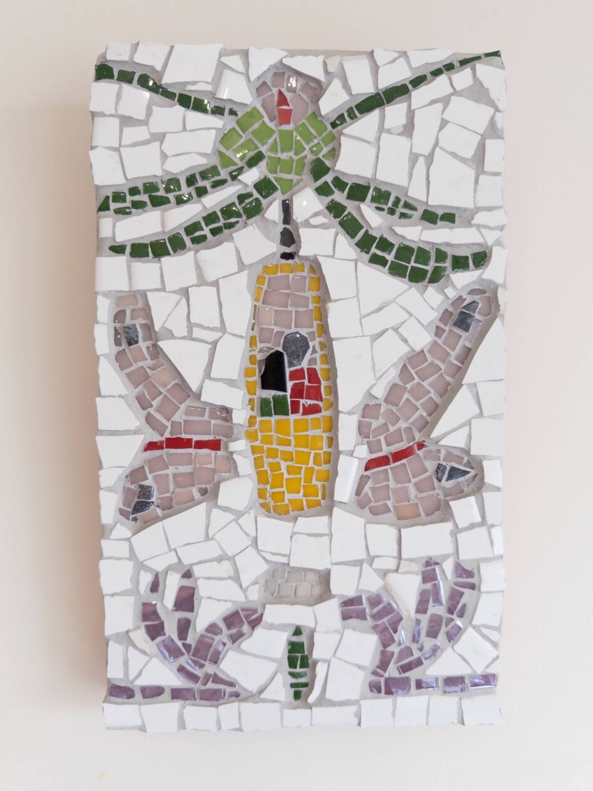 Мозаика, стеклянная плитка, кафель, дерево. Уникальное произведение. 2025.