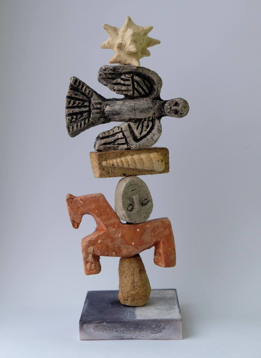 Ветровей 005 – Скульптура из фарфора и металла: розово-белая форма с четырьмя пропеллерами, современный арт, 2024