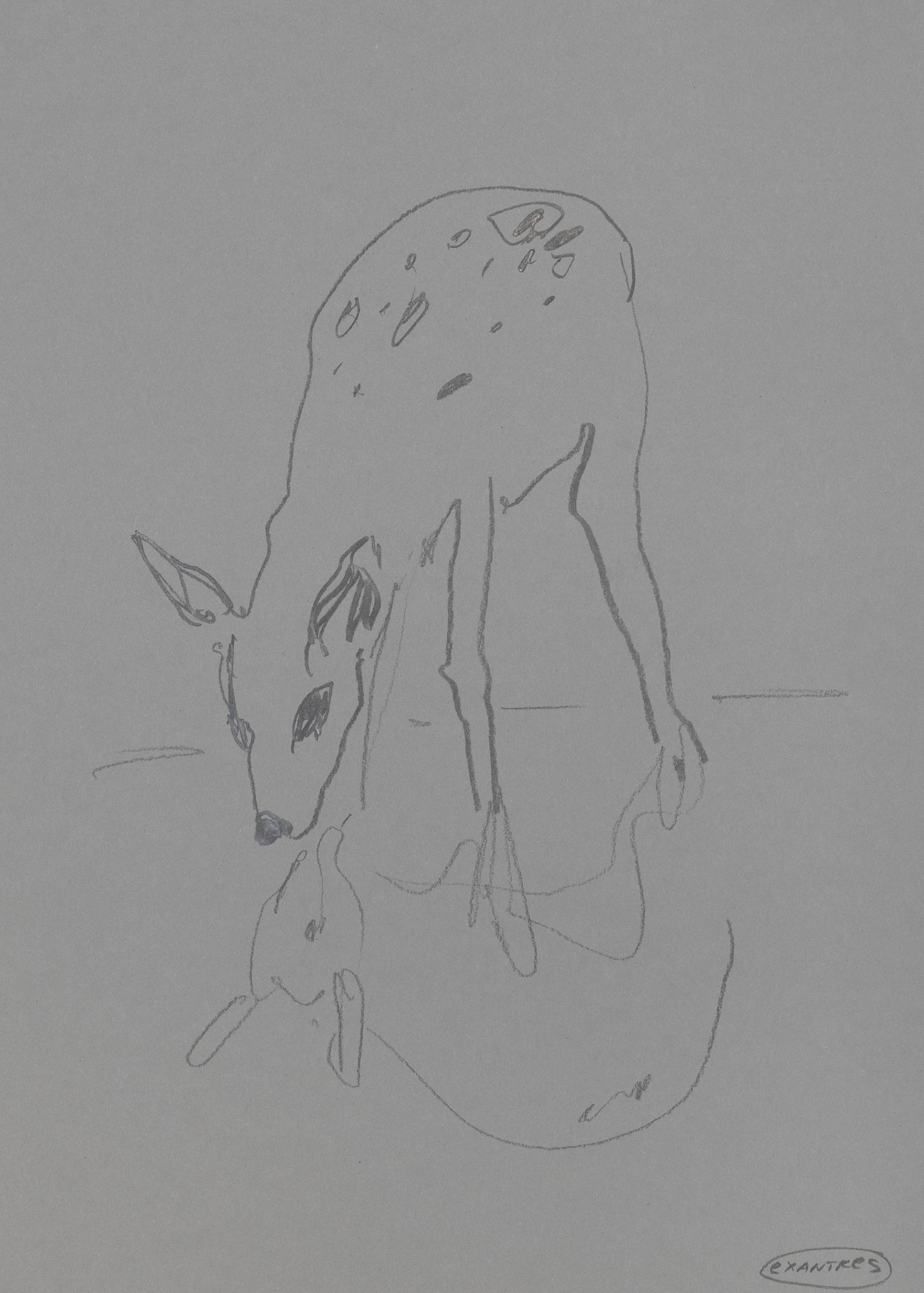 Чёрно-белый рисунок женщины в позе ню, графика карандашом, минимализм, серия Exantres, 2023