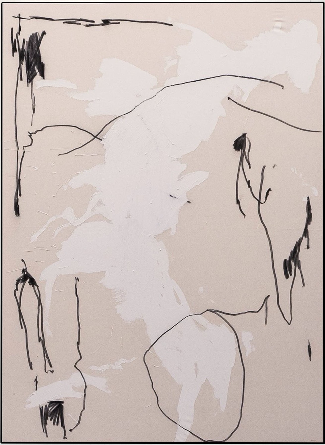 Акриловая абстрактная живопись «untitled w 001» с чёрными линиями на светлом фоне, TONY.WWWWW, 2022
