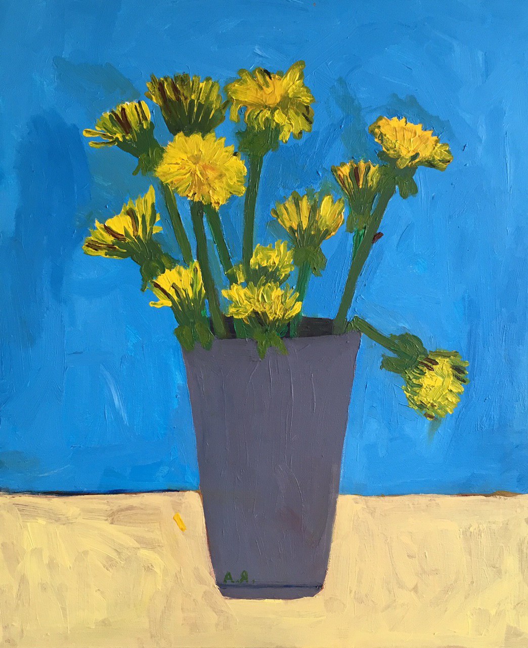 Нежный цветочный букет на жёлтом фоне, акрил на холсте, Маша Богатова, современная живопись