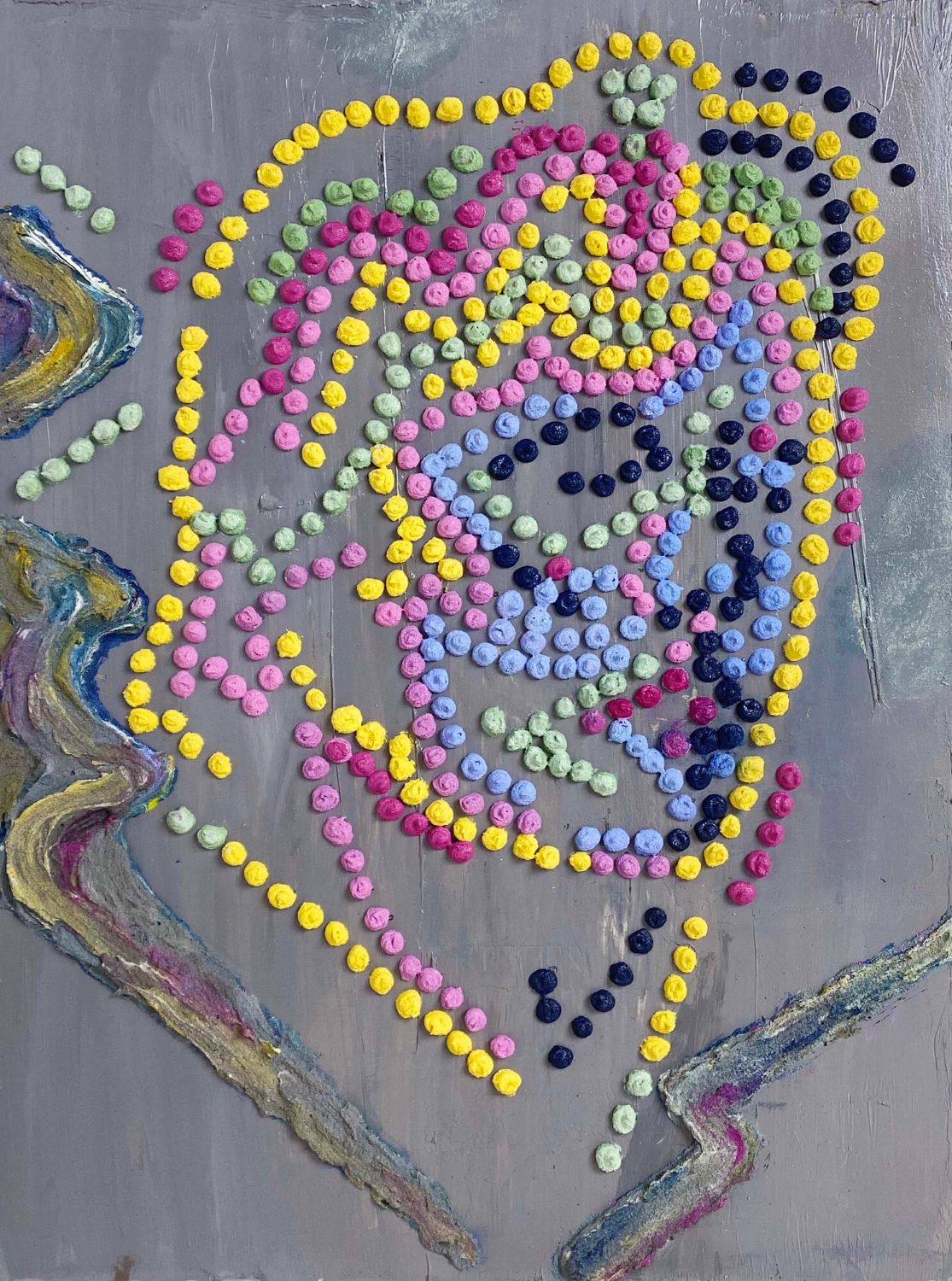 Холст, акрил, мелки. Уникальное произведение. Россия, 2022.