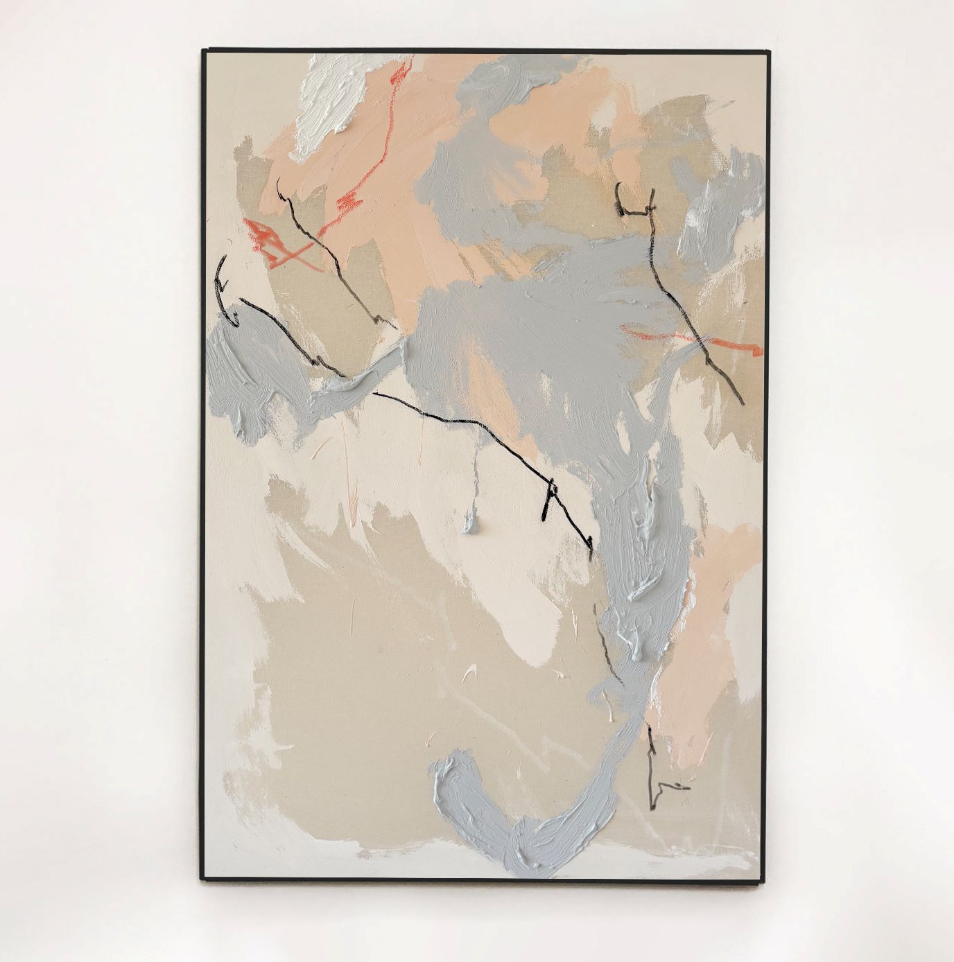 Акриловая абстрактная живопись «untitled w 001» с чёрными линиями на светлом фоне, TONY.WWWWW, 2022
