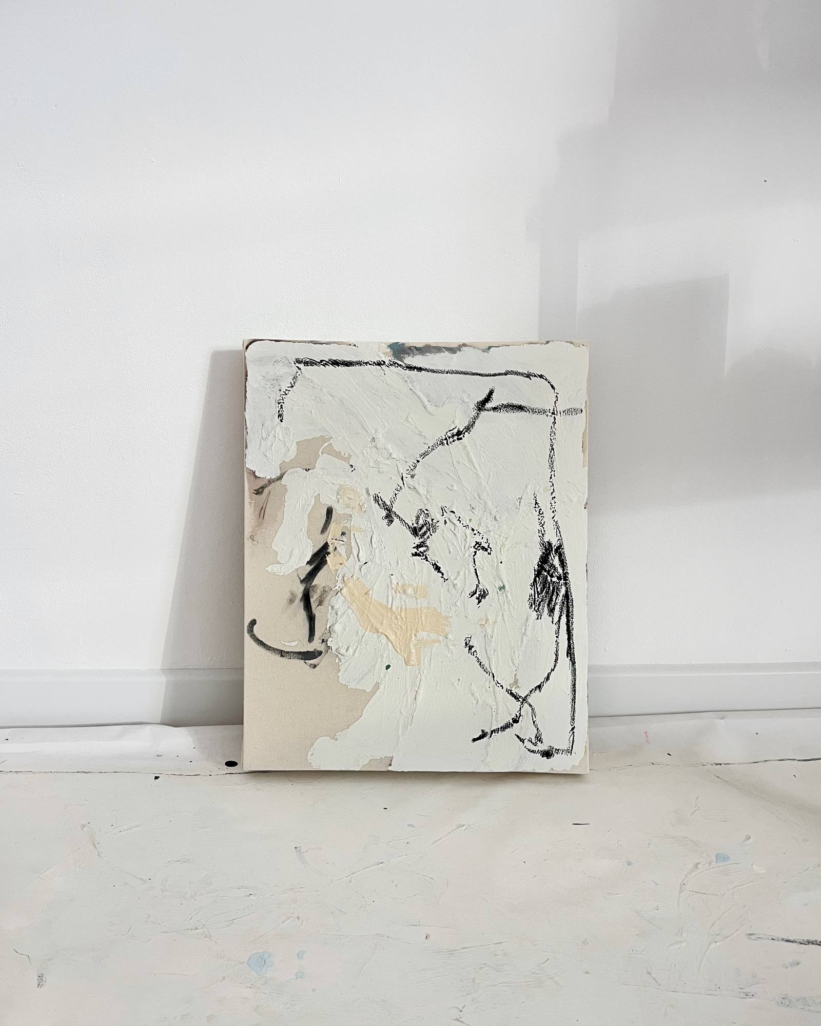 Акриловая абстрактная живопись «untitled w 001» с чёрными линиями на светлом фоне, TONY.WWWWW, 2022