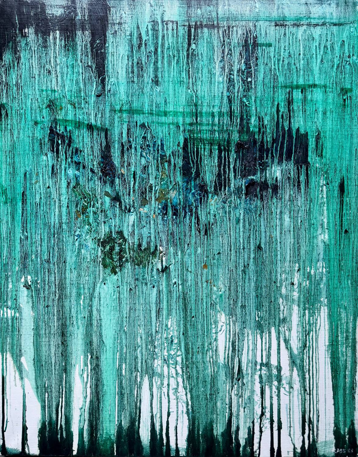 Березовый сок — крупная абстракция Анны Касс, холст, масло, эпоксидная смола, серая фактура, 2023