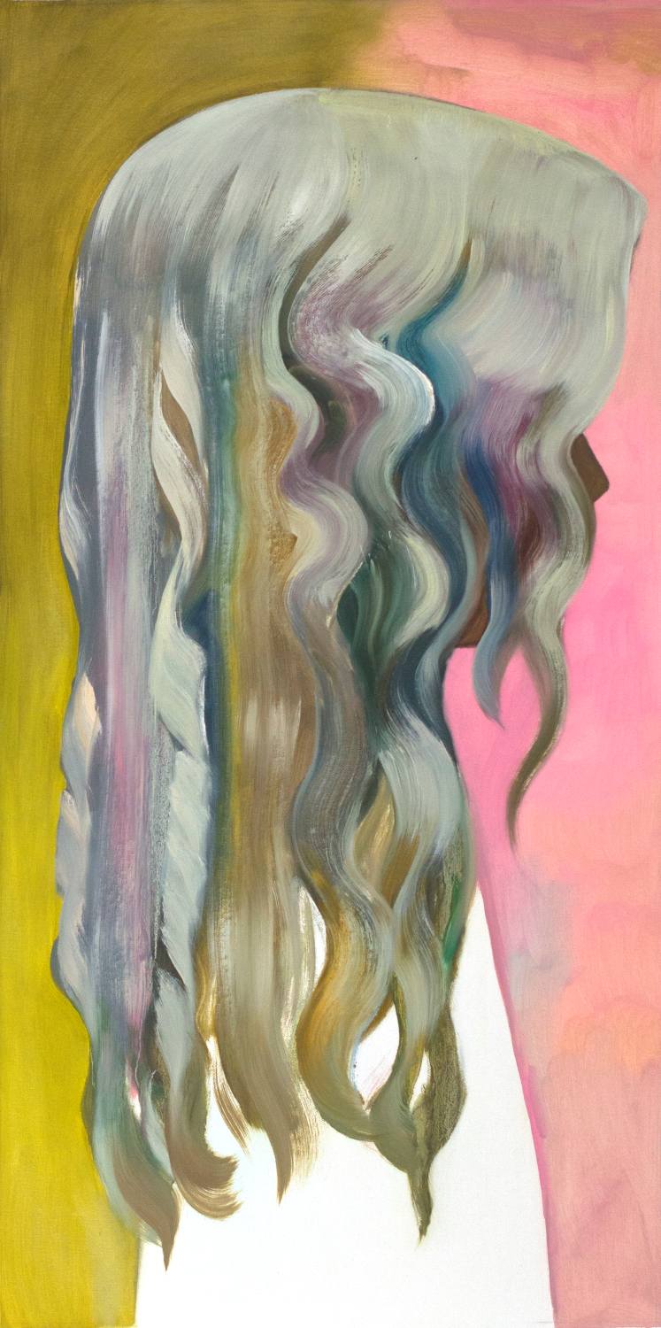 Портрет женщины с рукой у лица в лавандовых тонах, живопись маслом, авторская работа Дарьи Барыбиной