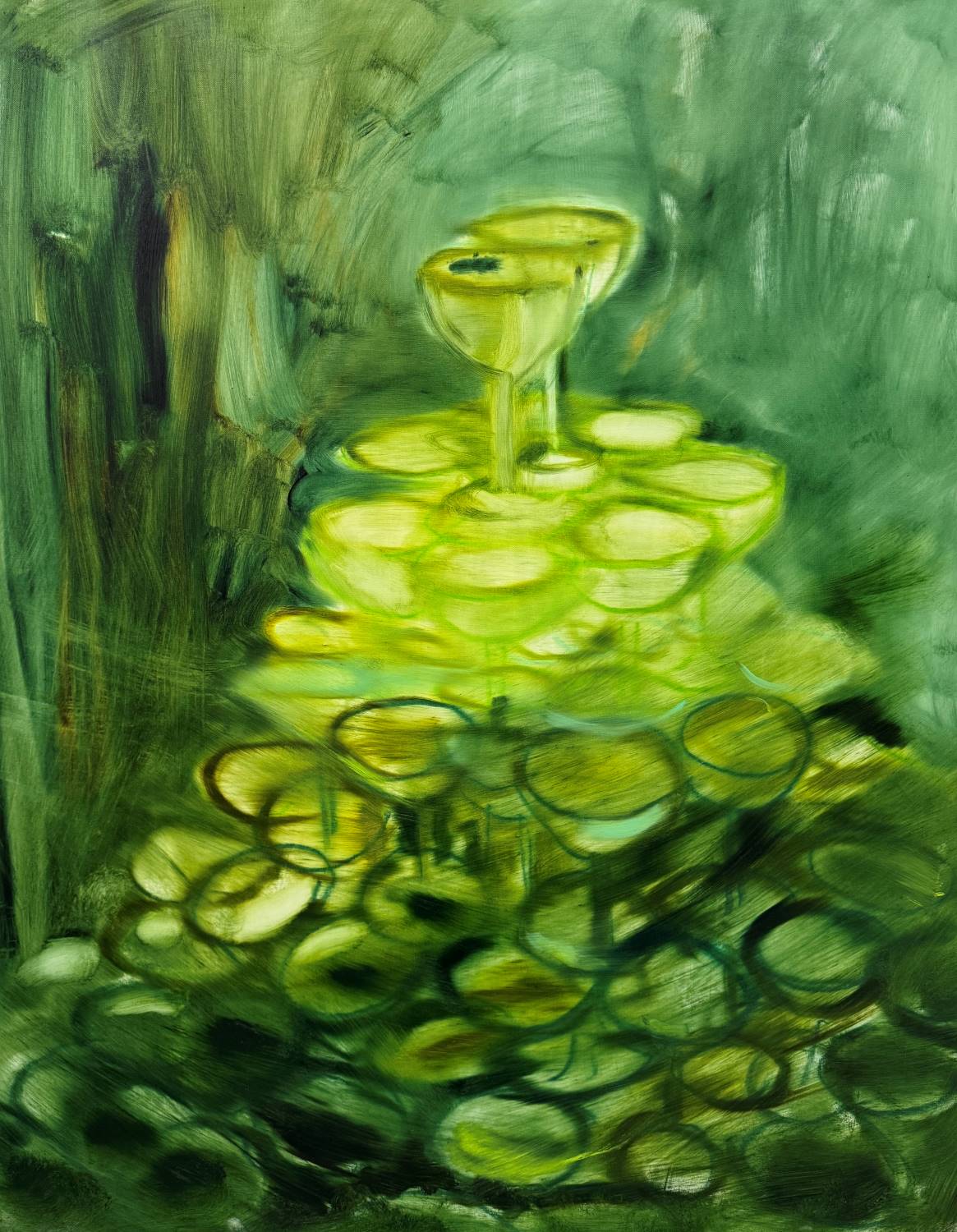 Картина с абстрактными формами и деревьями в зеленой гамме, масло и акрил, Елизавета Глушкова 2024