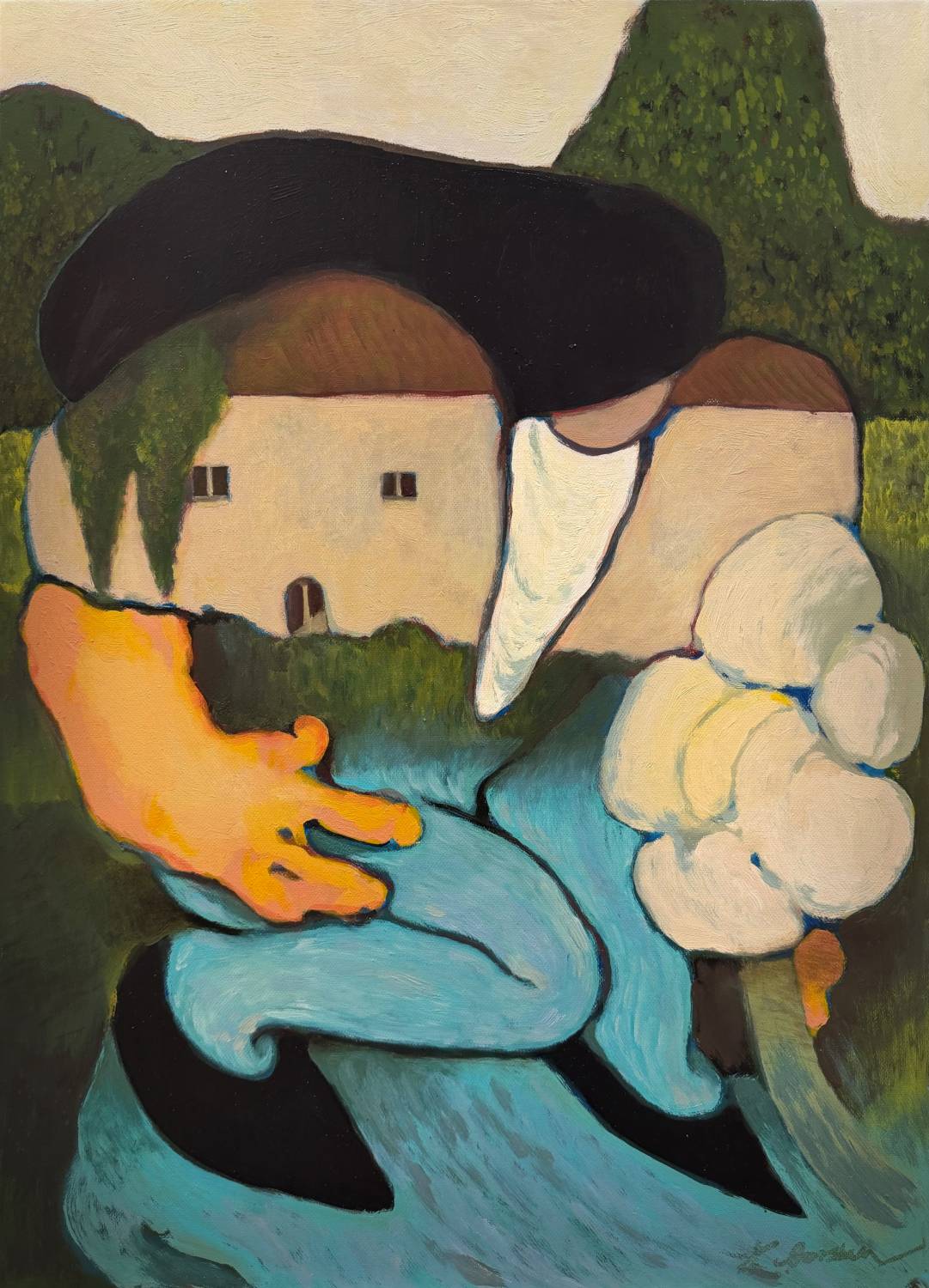 Масляная живопись с прозрачной фигурой в ночном пейзаже, мистический сюжет, Ася Панина