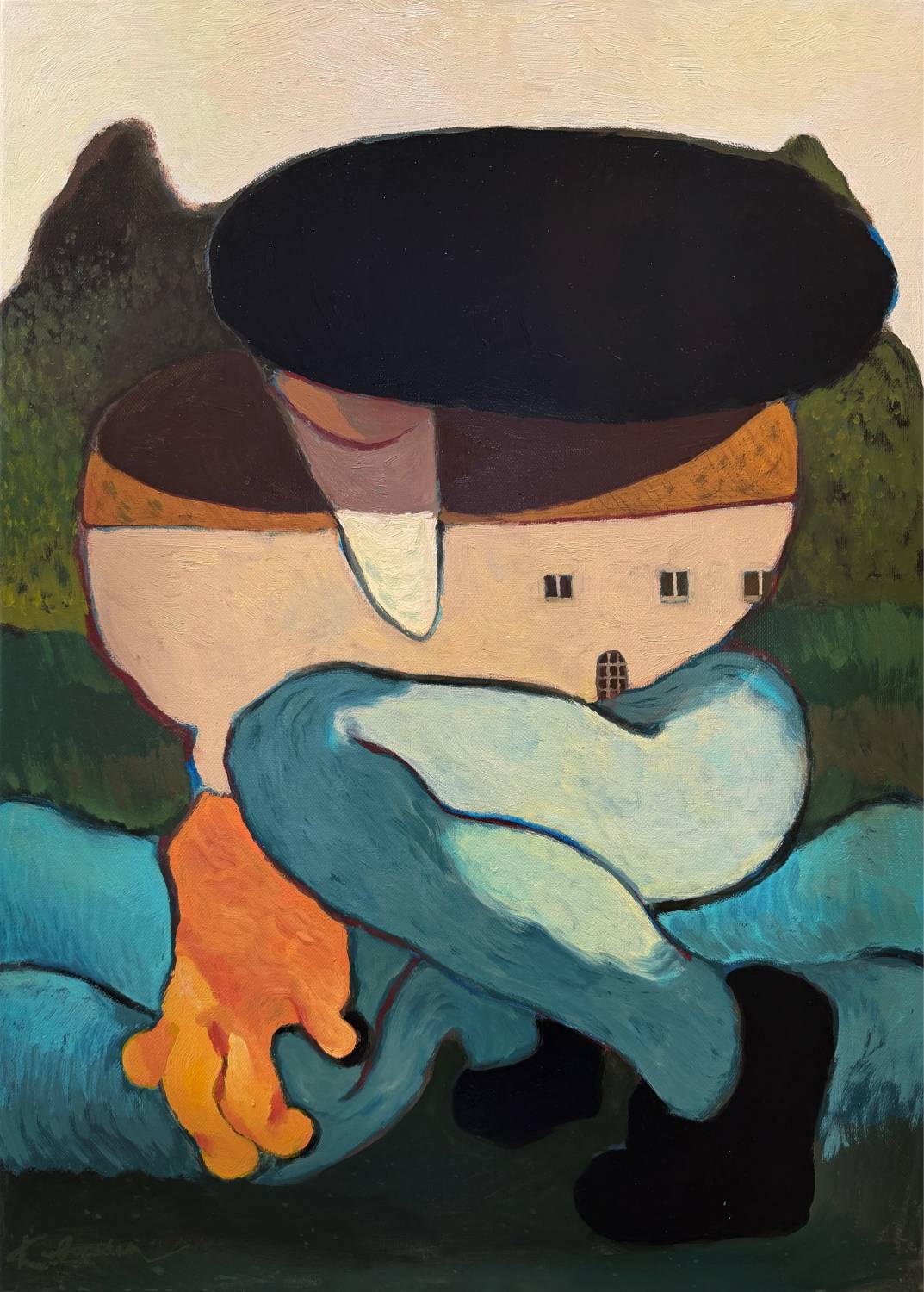 Масляная живопись с прозрачной фигурой в ночном пейзаже, мистический сюжет, Ася Панина