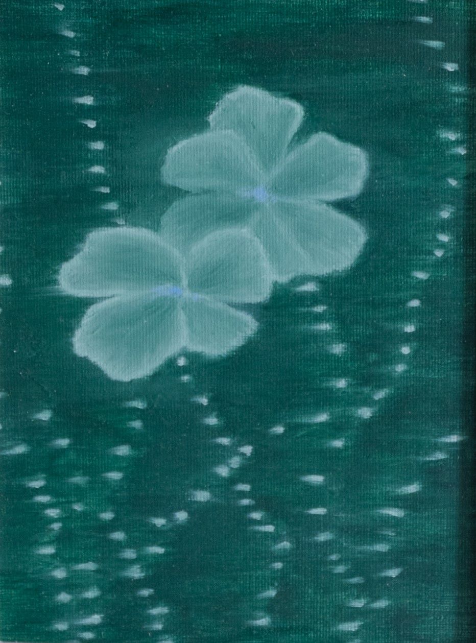Без названия (Мария Ермоленко) — узкий ручей в лесу, мягкий свет, минималистичный пейзаж, печать на ханёмюле